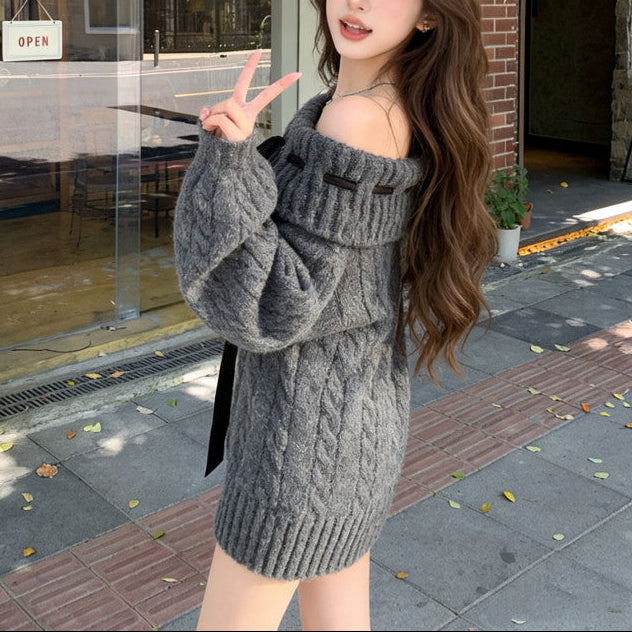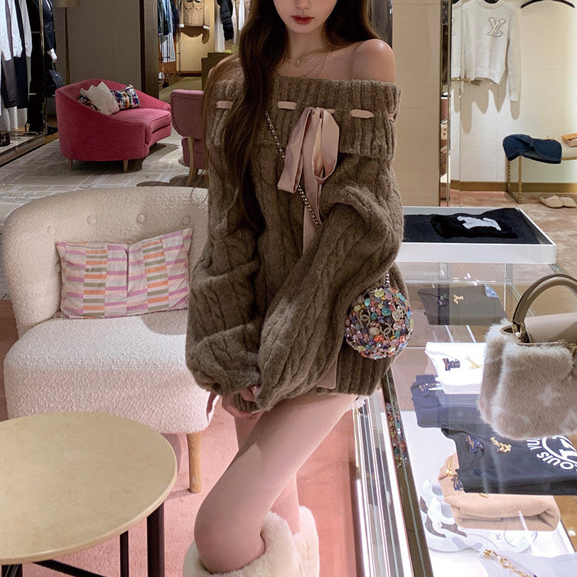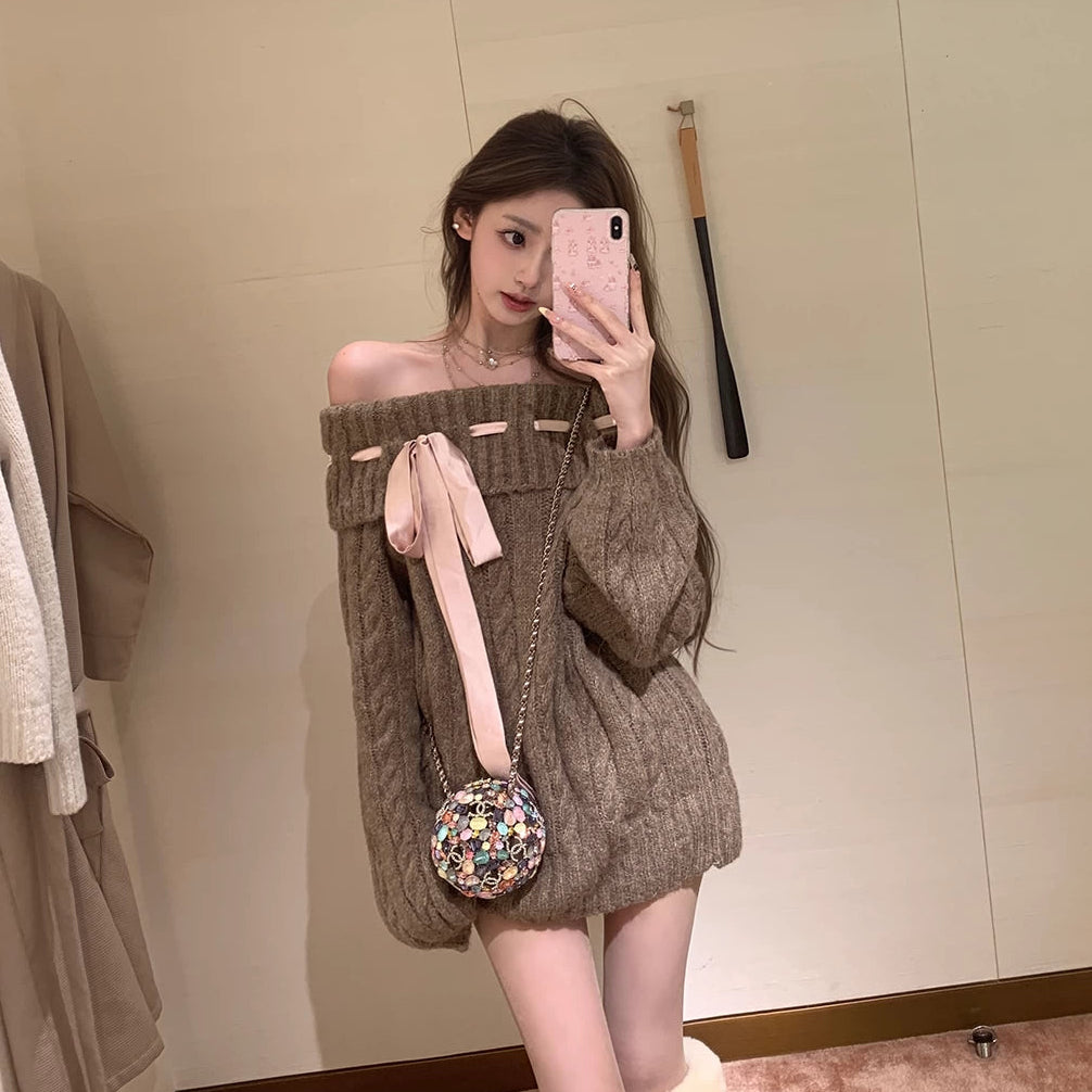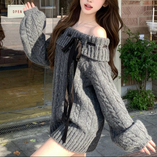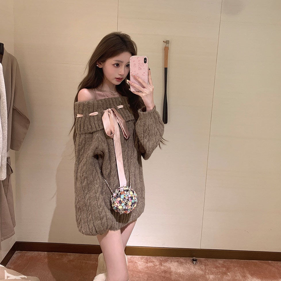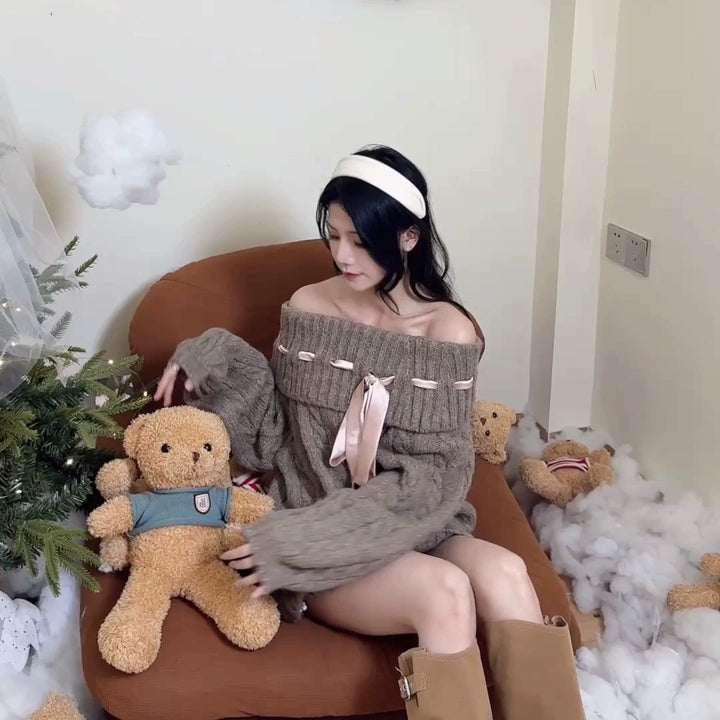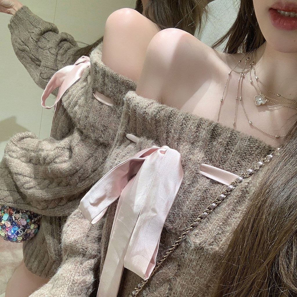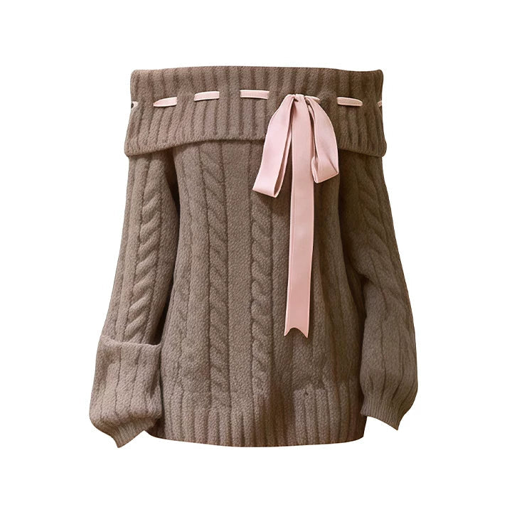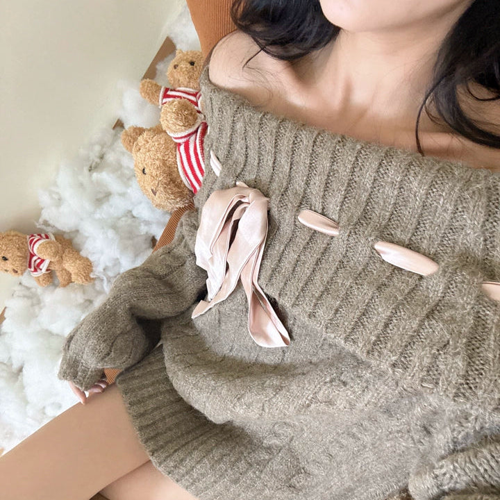 リボンオフショルニット(2COLOR)AT1399