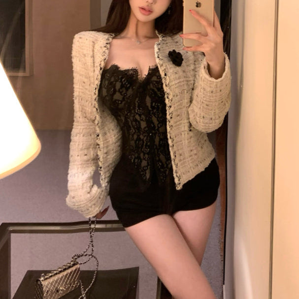 ・レディなお姉さんコーデに欠かせないツイードのノーカラージャケット。