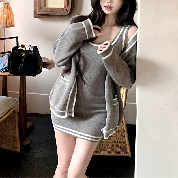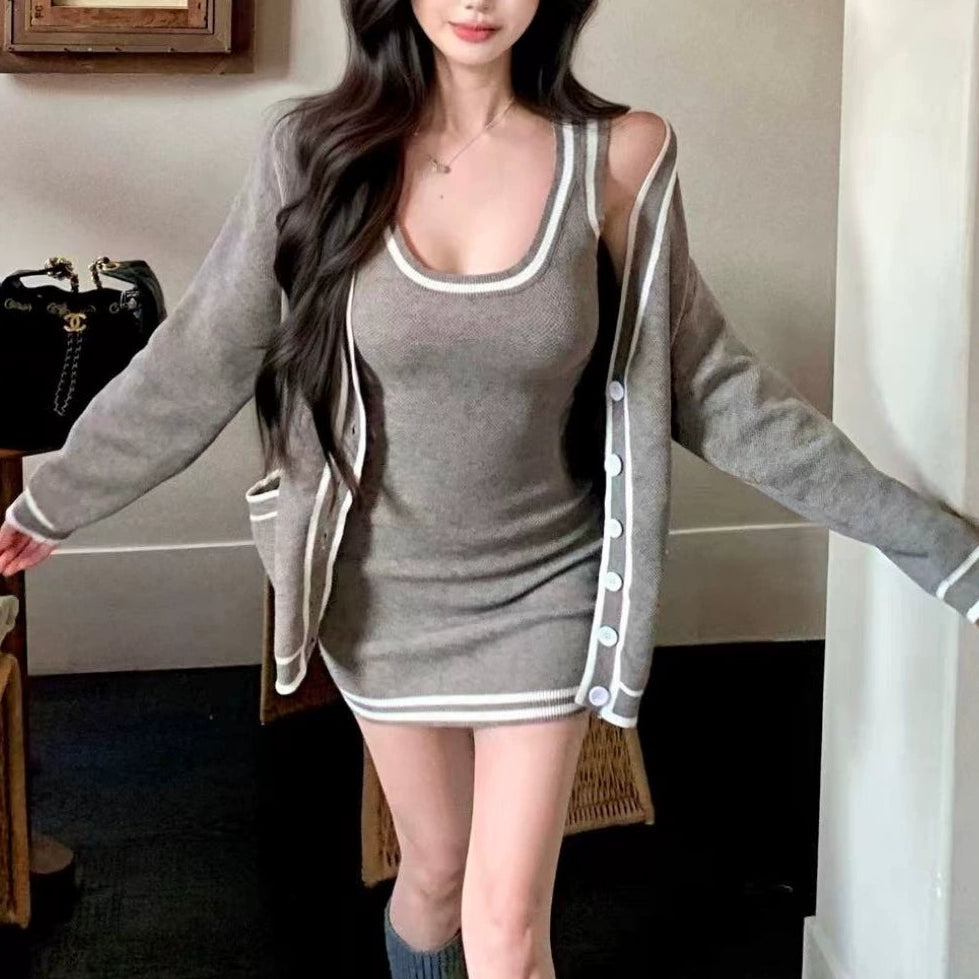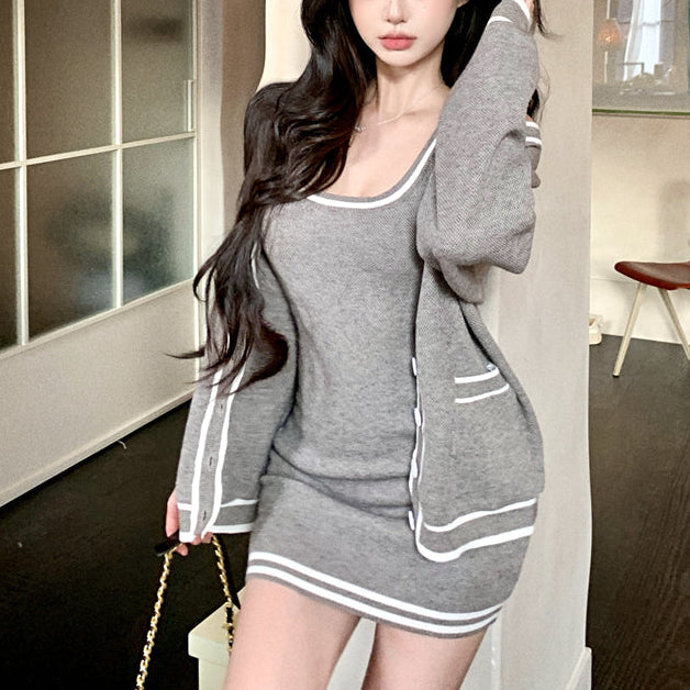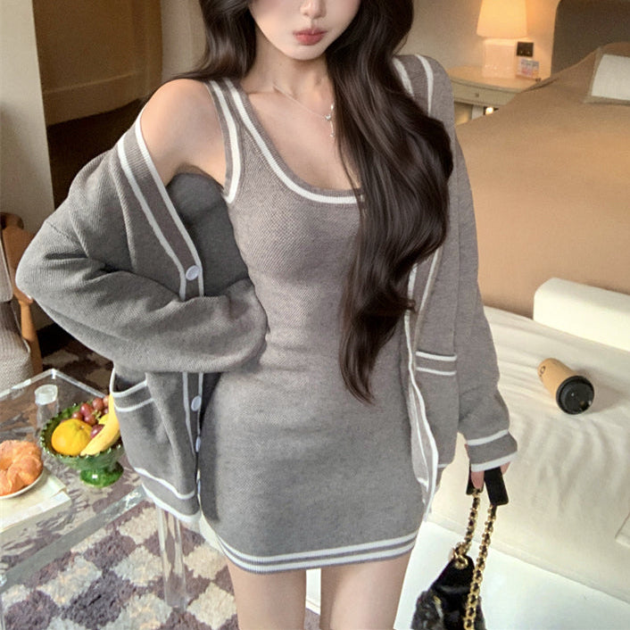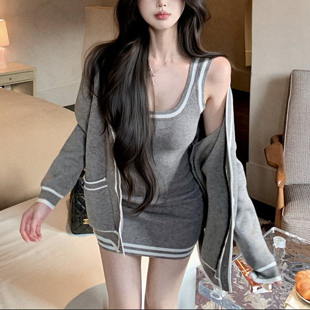 ・タイトなタンクトップワンピにゆったりシルエットのカーデがSETになったアイテムです♡