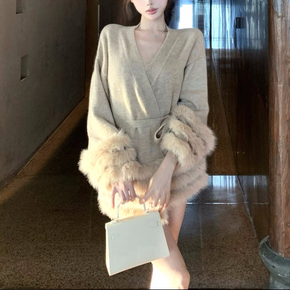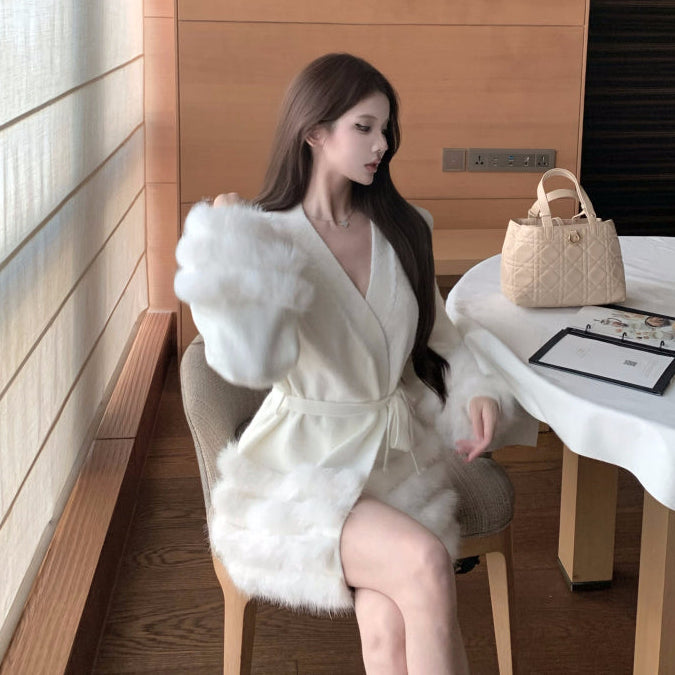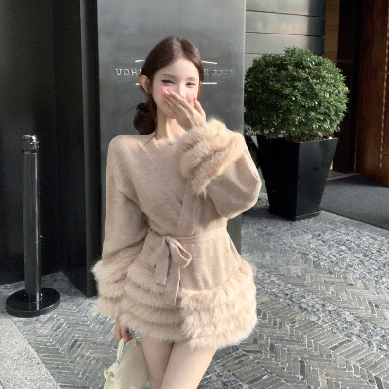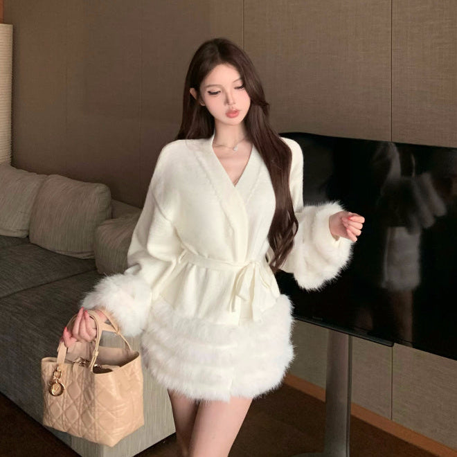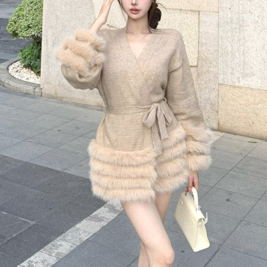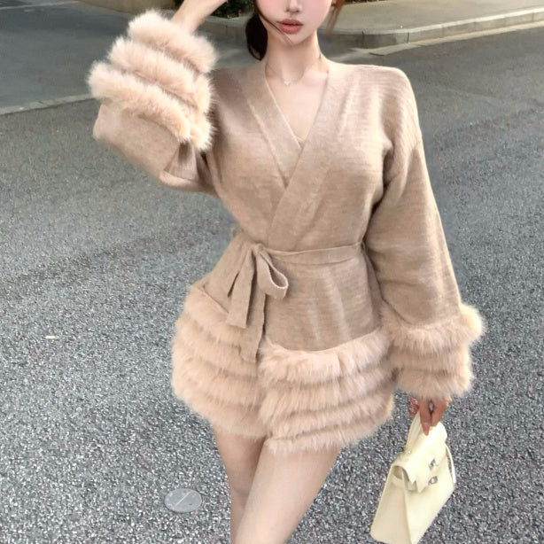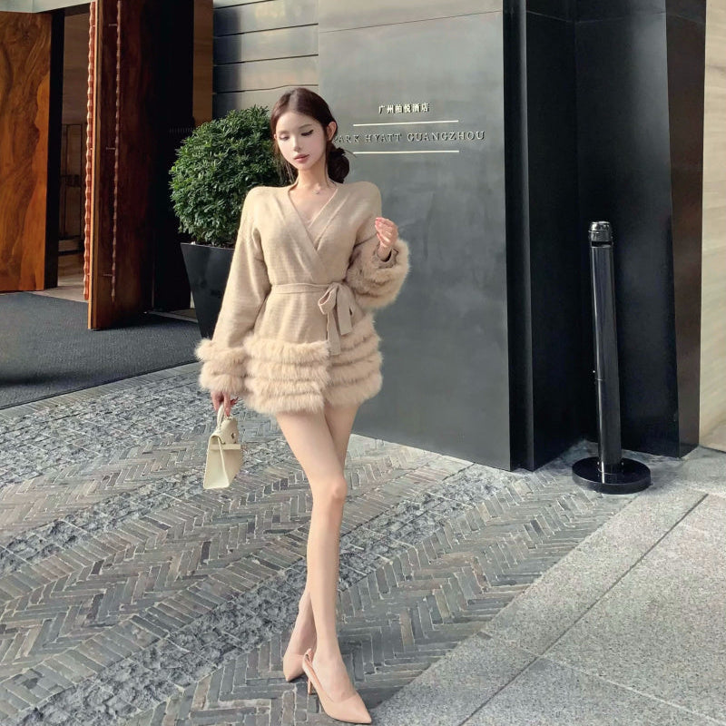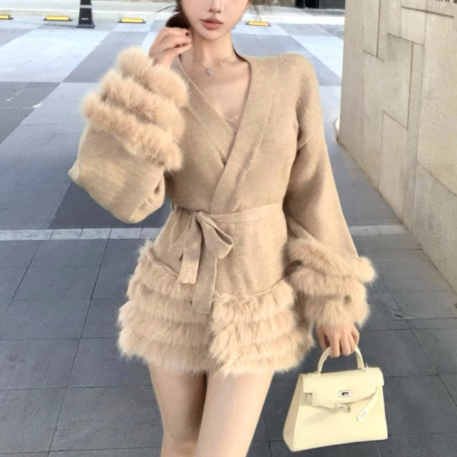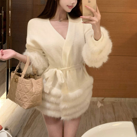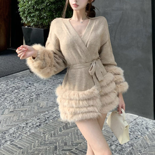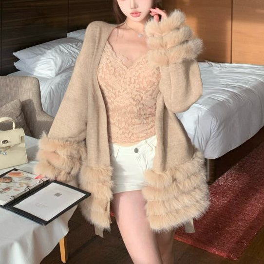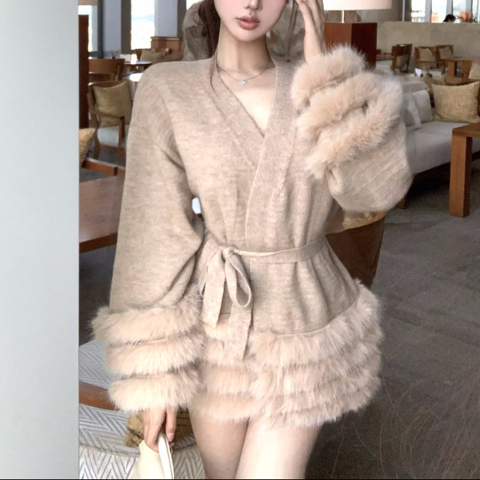 Vネックファーカーディガン(2COLOR)AJ1184