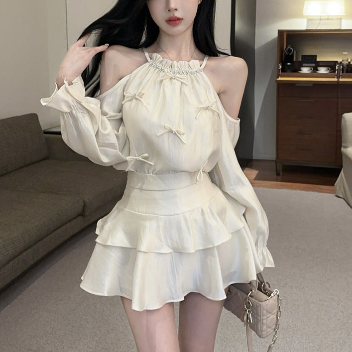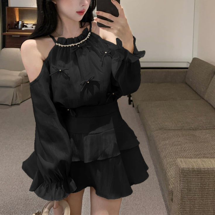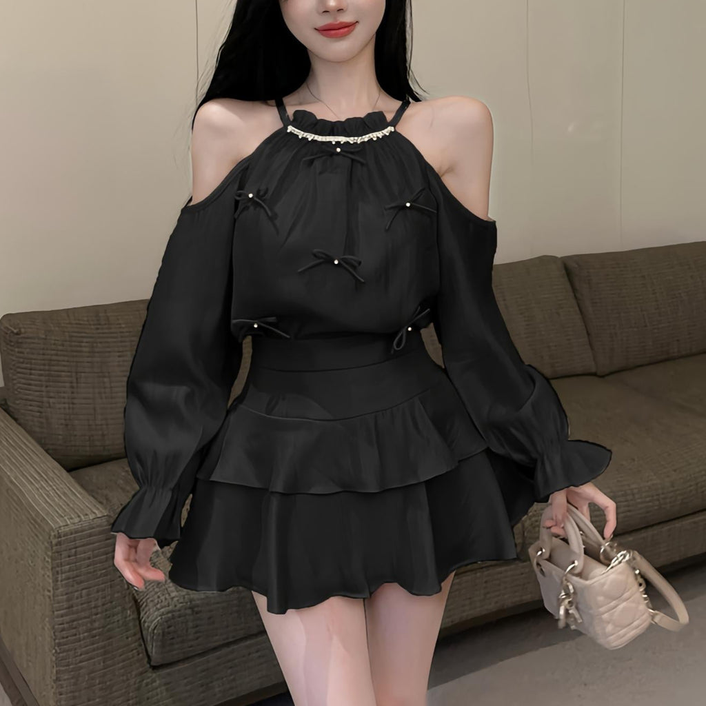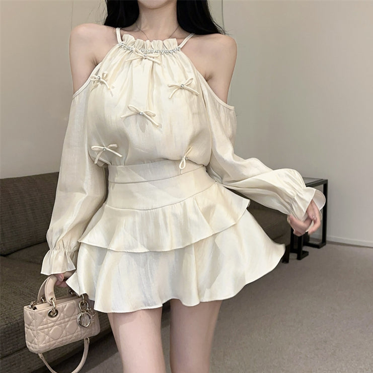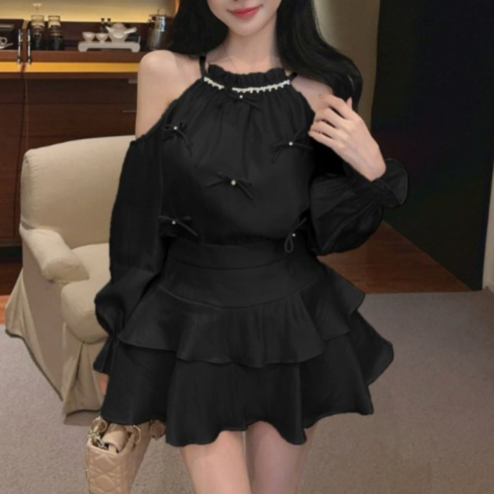 オープンショルダーシャイニーセットアップ(3COLOR)AS1658