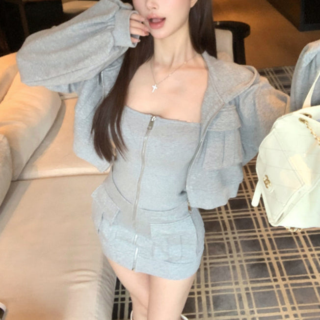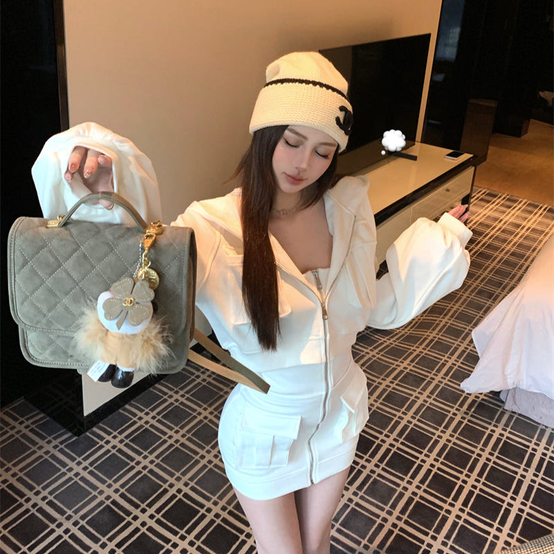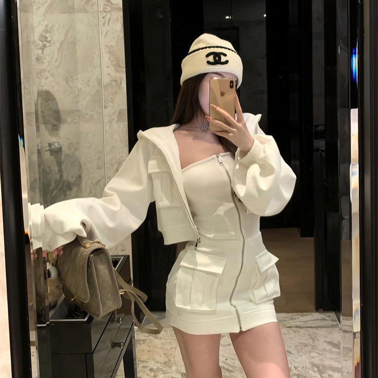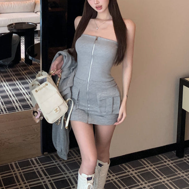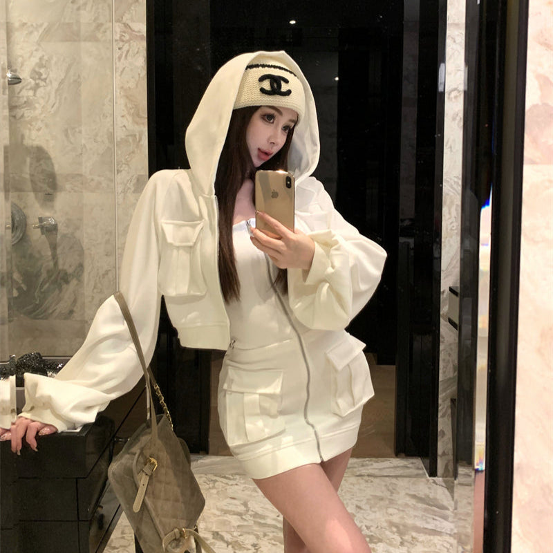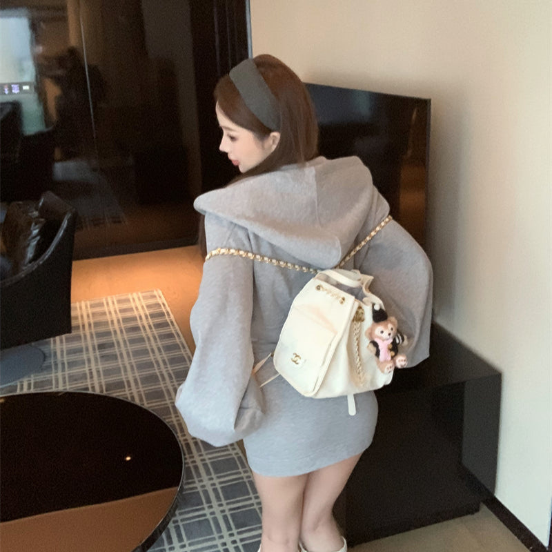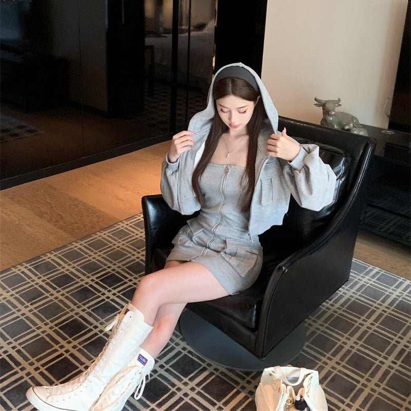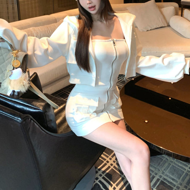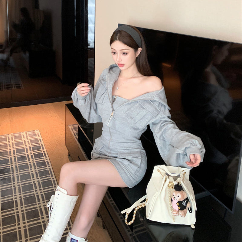 ・スウェット地でカジュアルだけど、パーカーを脱ぐと露出度高のベアワンピでギャップが可愛いアイテム♡