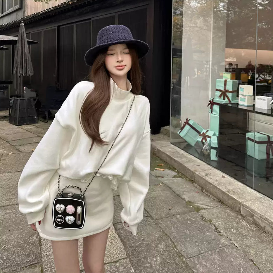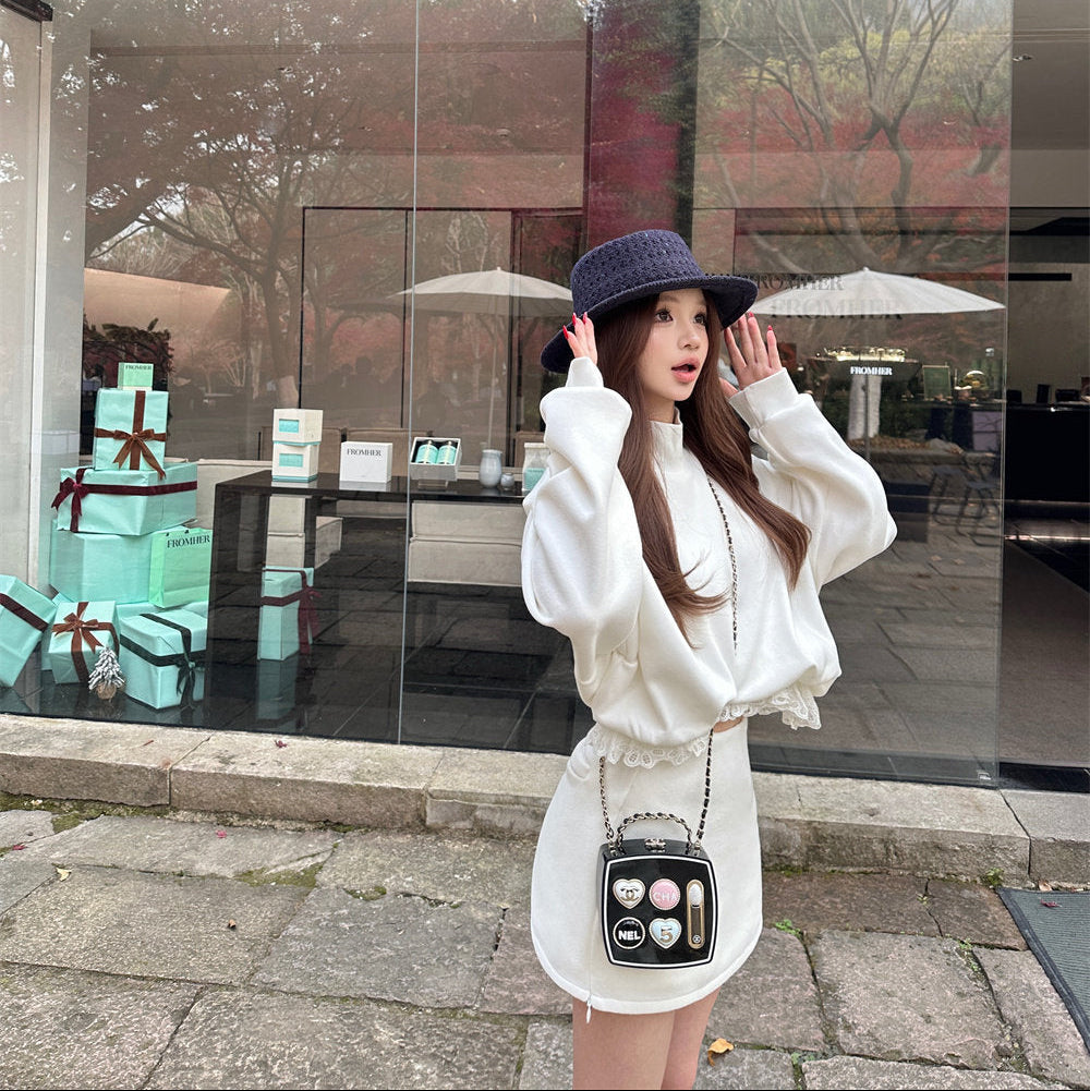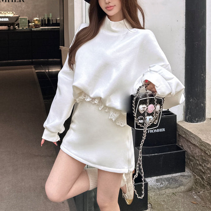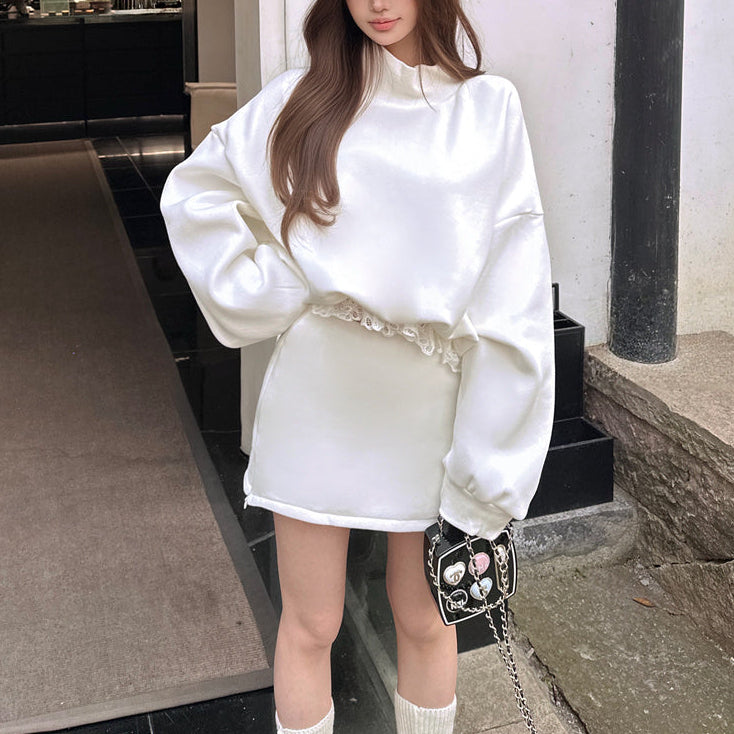 ・トップスの裾部分にレースがついていて、ラフだけど可愛さのあるセットアップ。