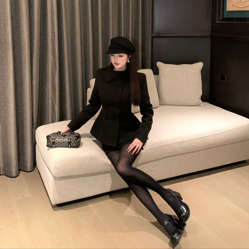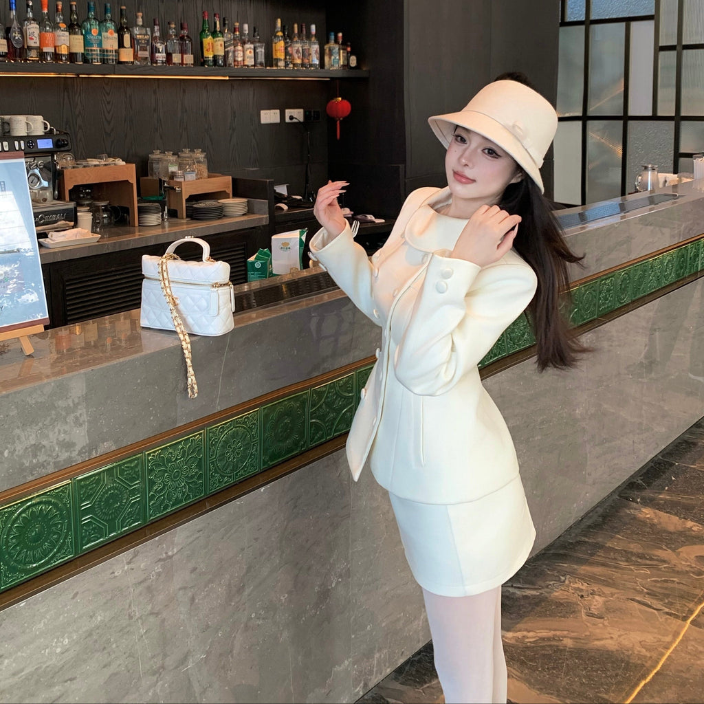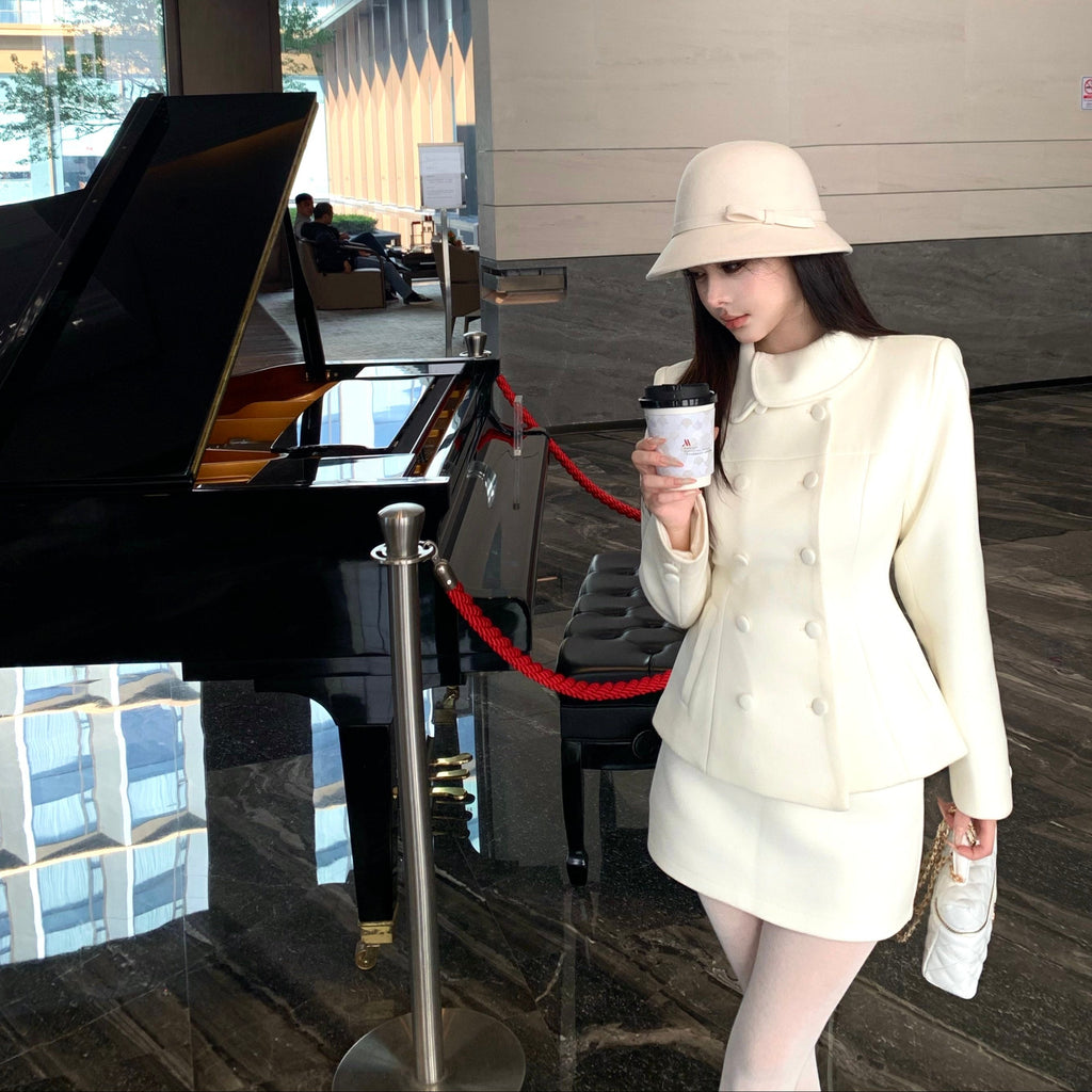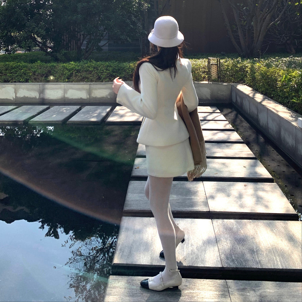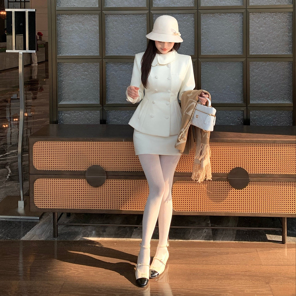 ・首元のデザインやくるみボタンがクラシカルっぽさを演出してくれるセットアップ。