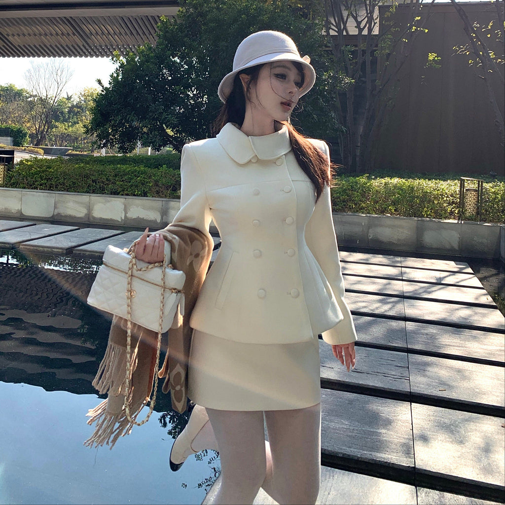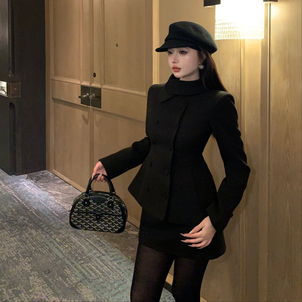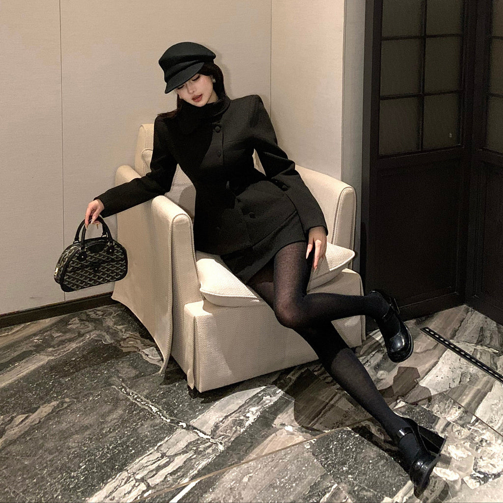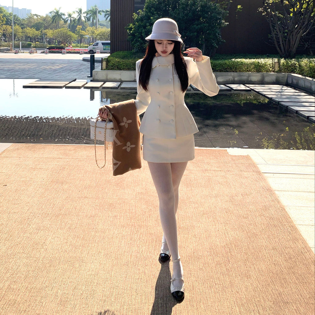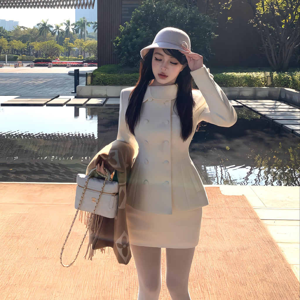 ・首元のデザインやくるみボタンがクラシカルっぽさを演出してくれるセットアップ。