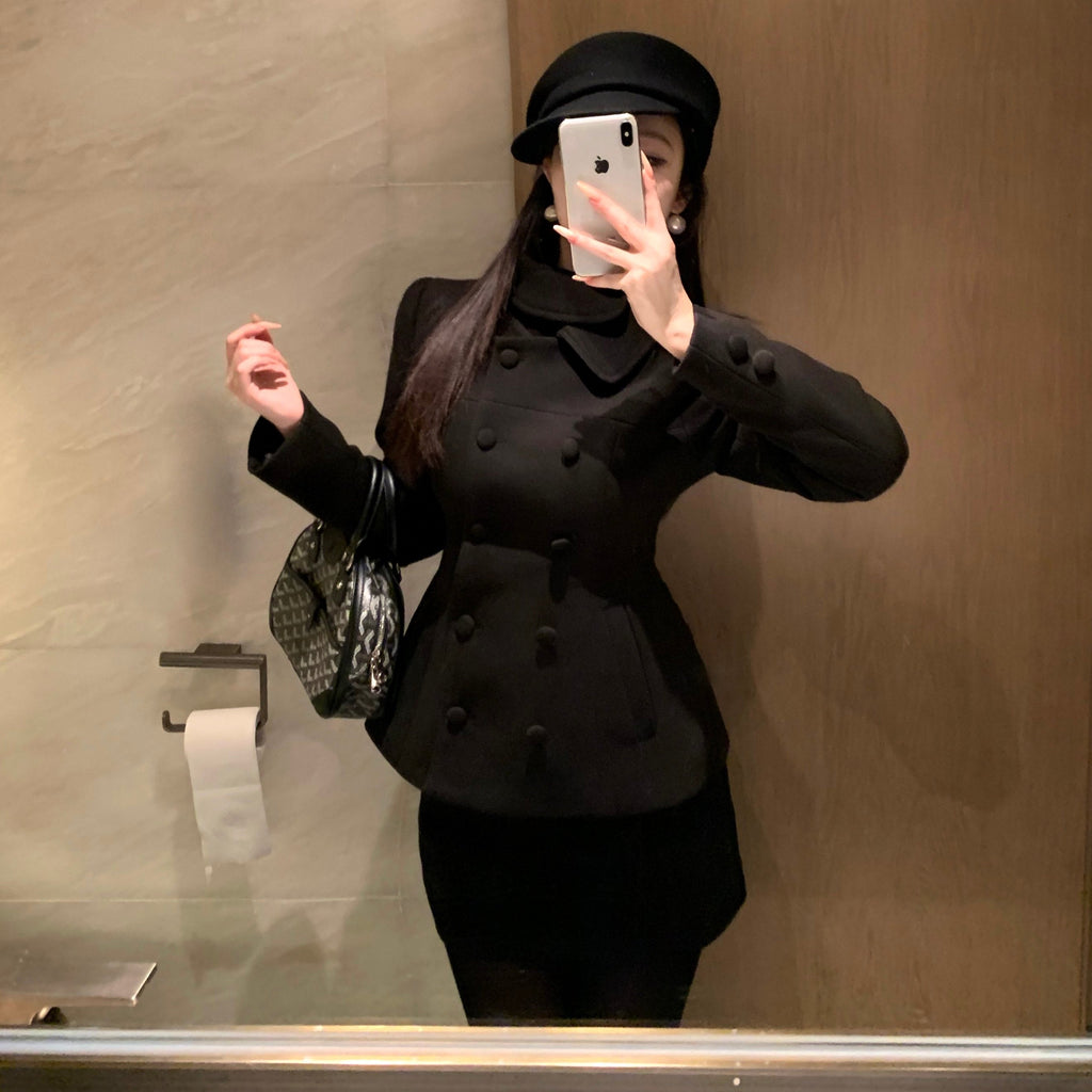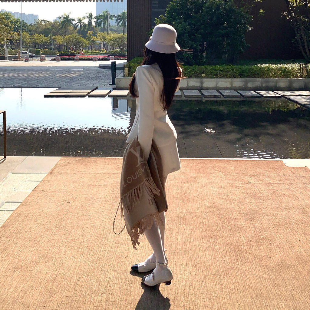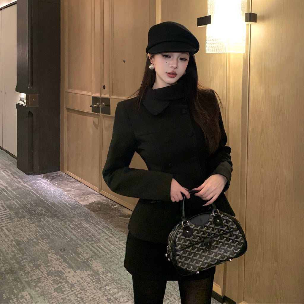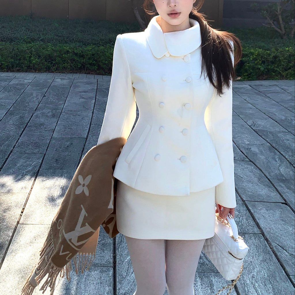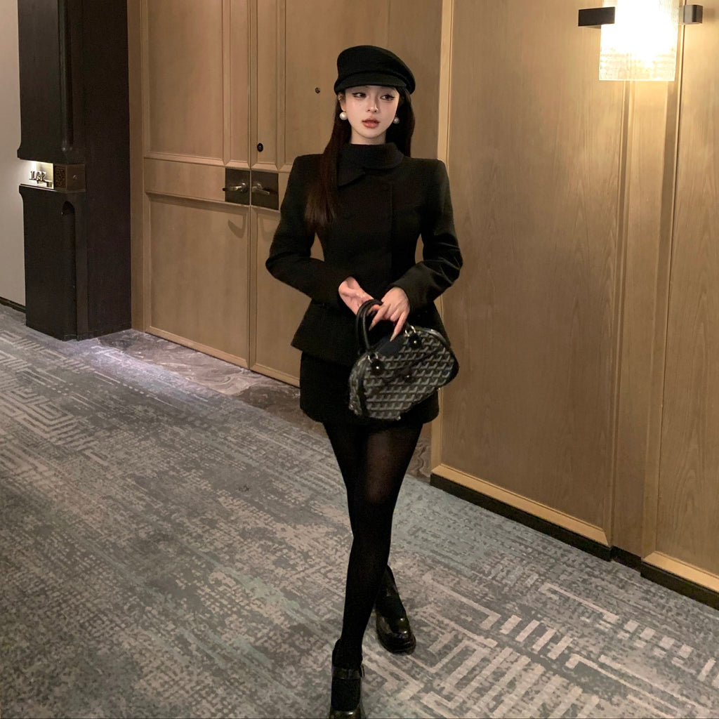 ・首元のデザインやくるみボタンがクラシカルっぽさを演出してくれるセットアップ。