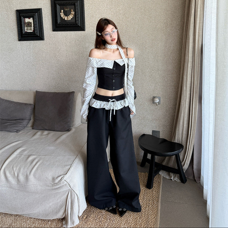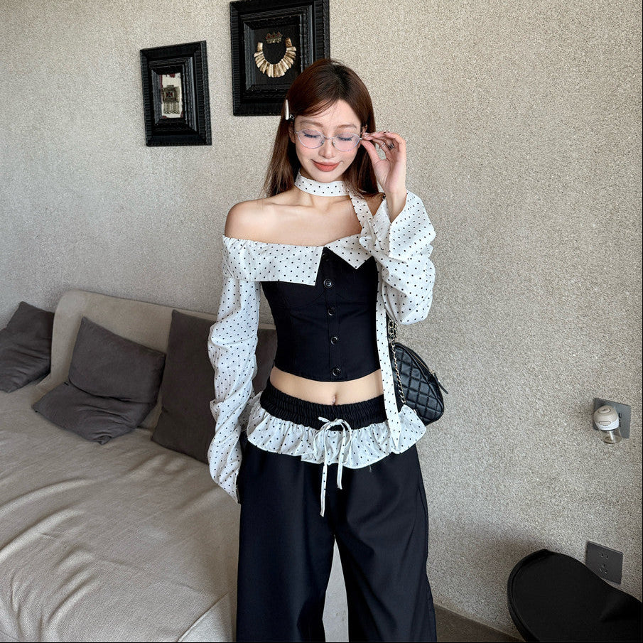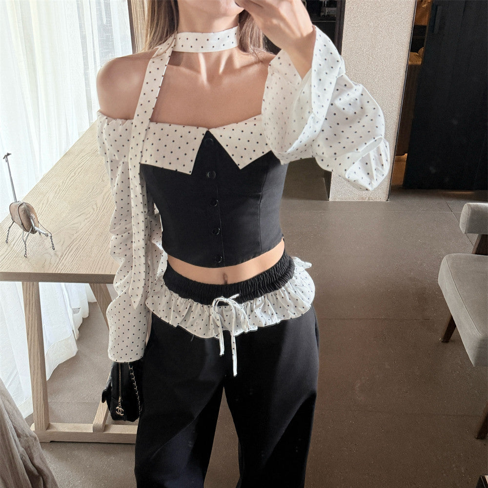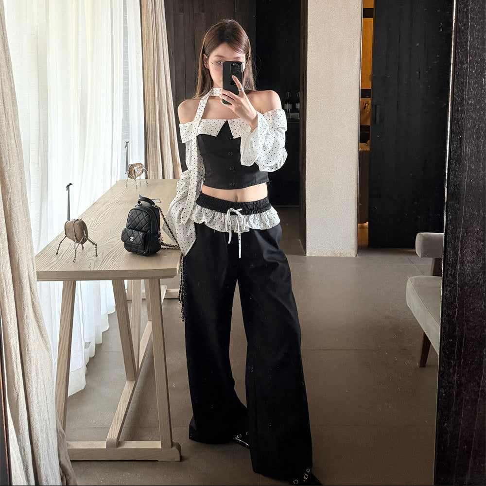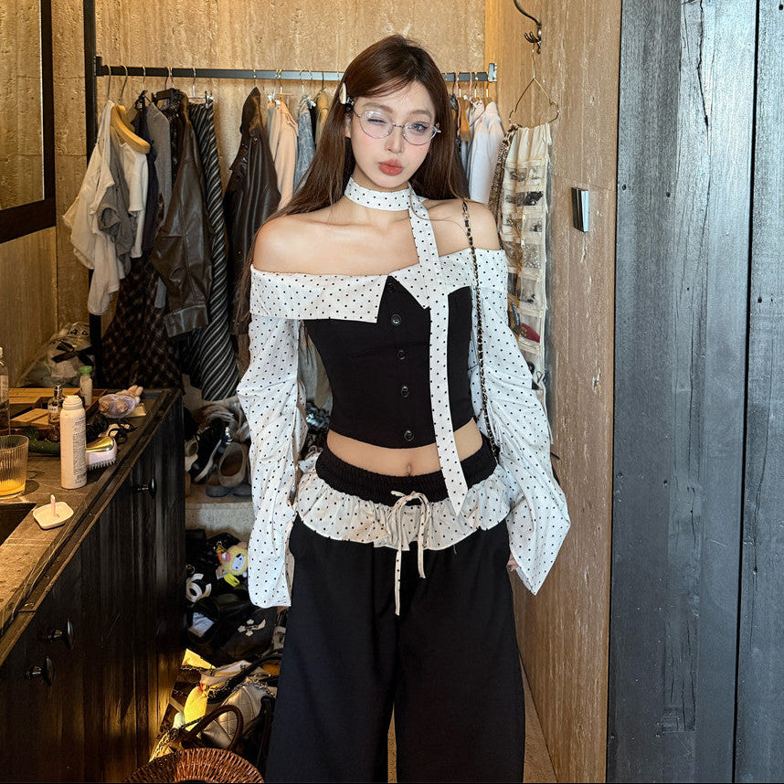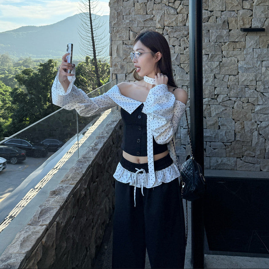・ボトムスにはドット柄のフリルが付いていたり少しガーリー要素も取り入れたデザインです。