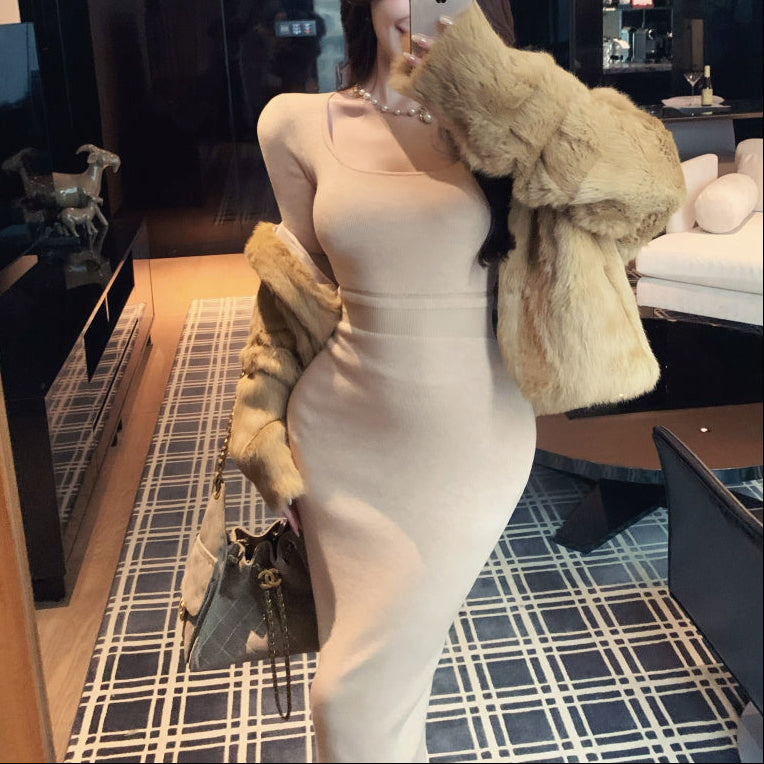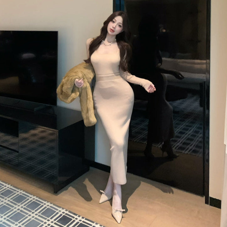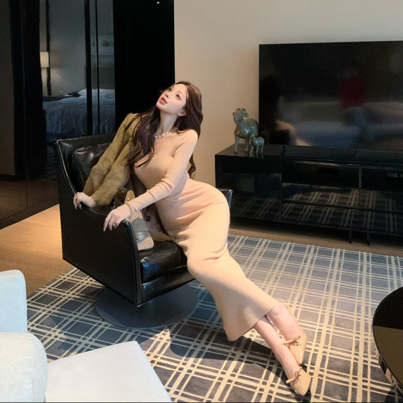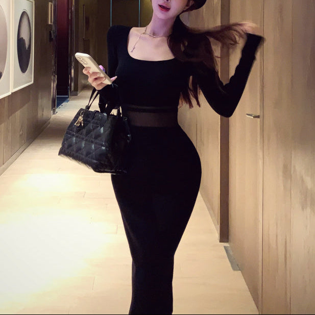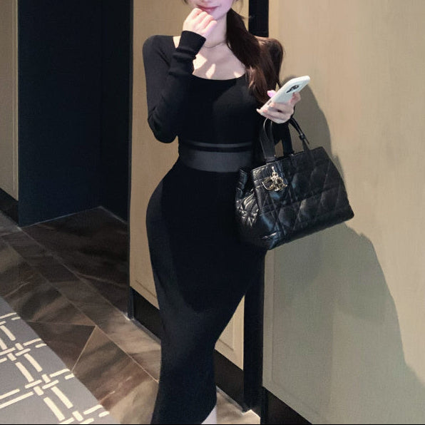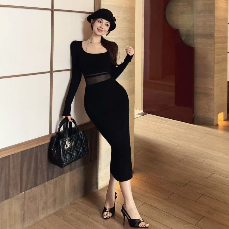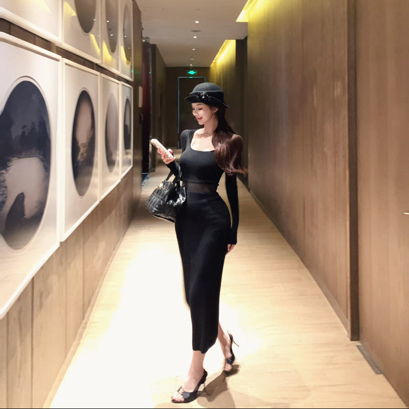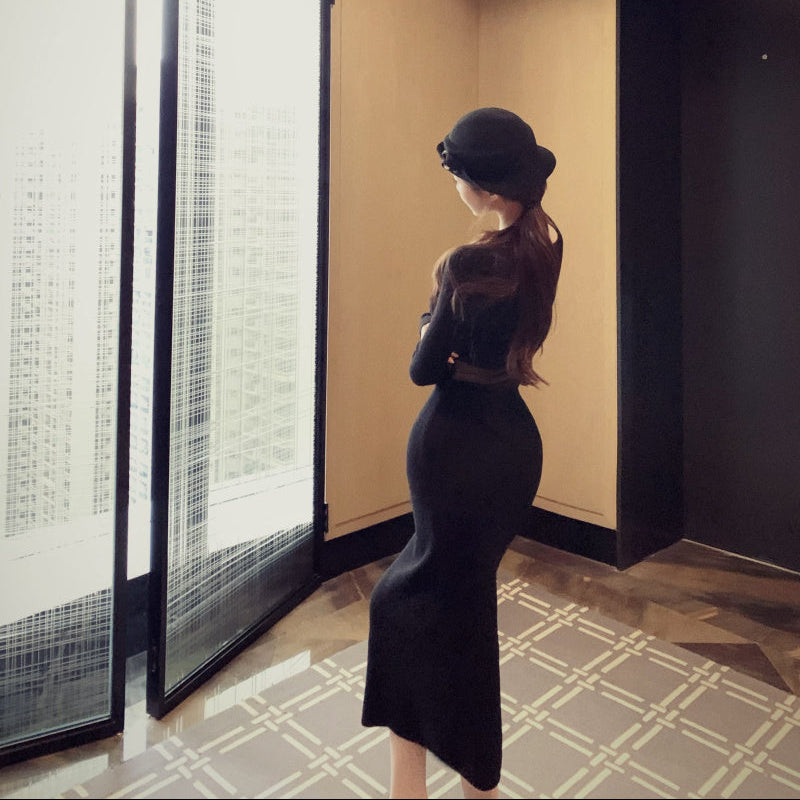 ウエストシースルーニットワンピース(2COLOR)AO1814