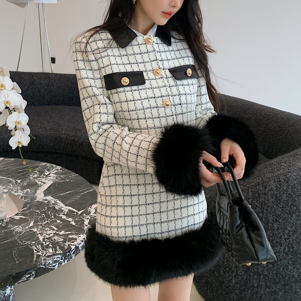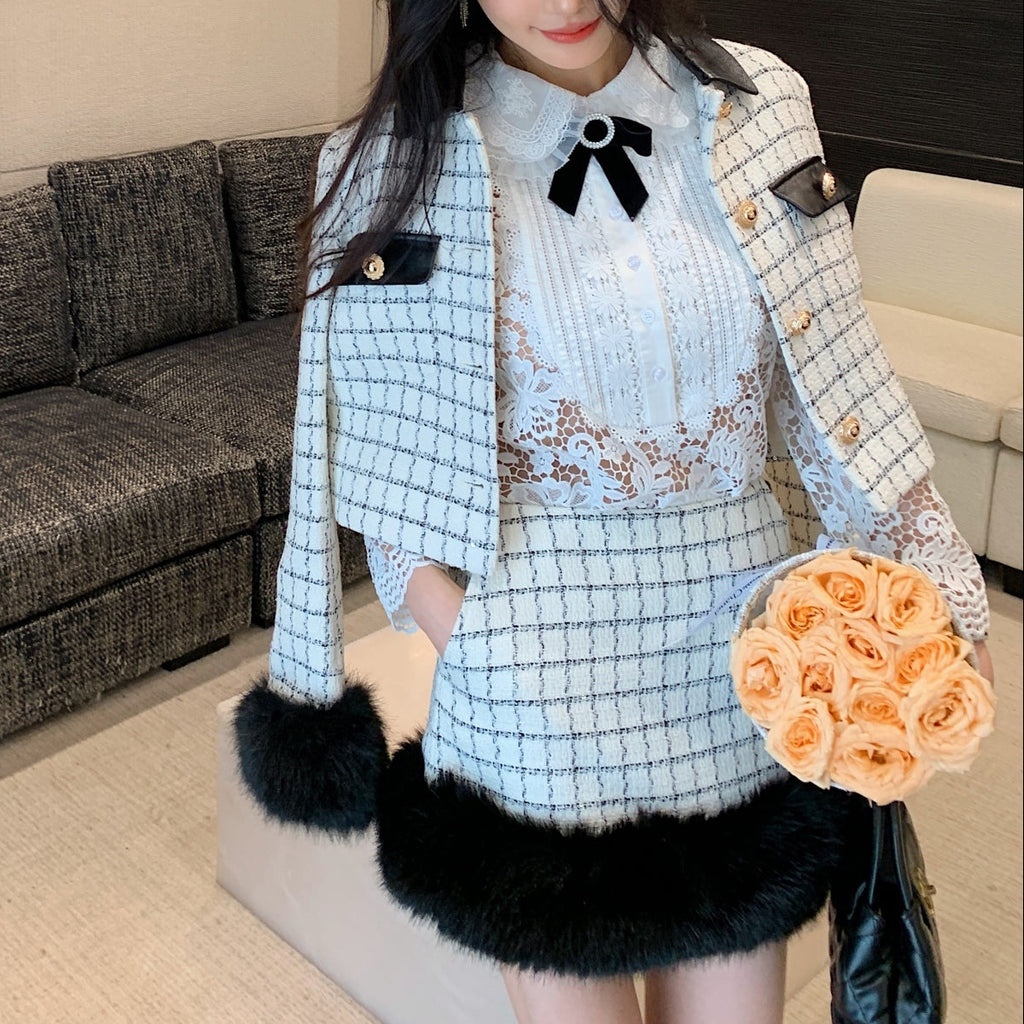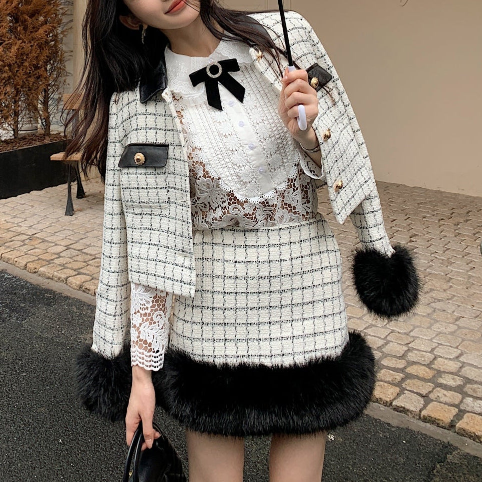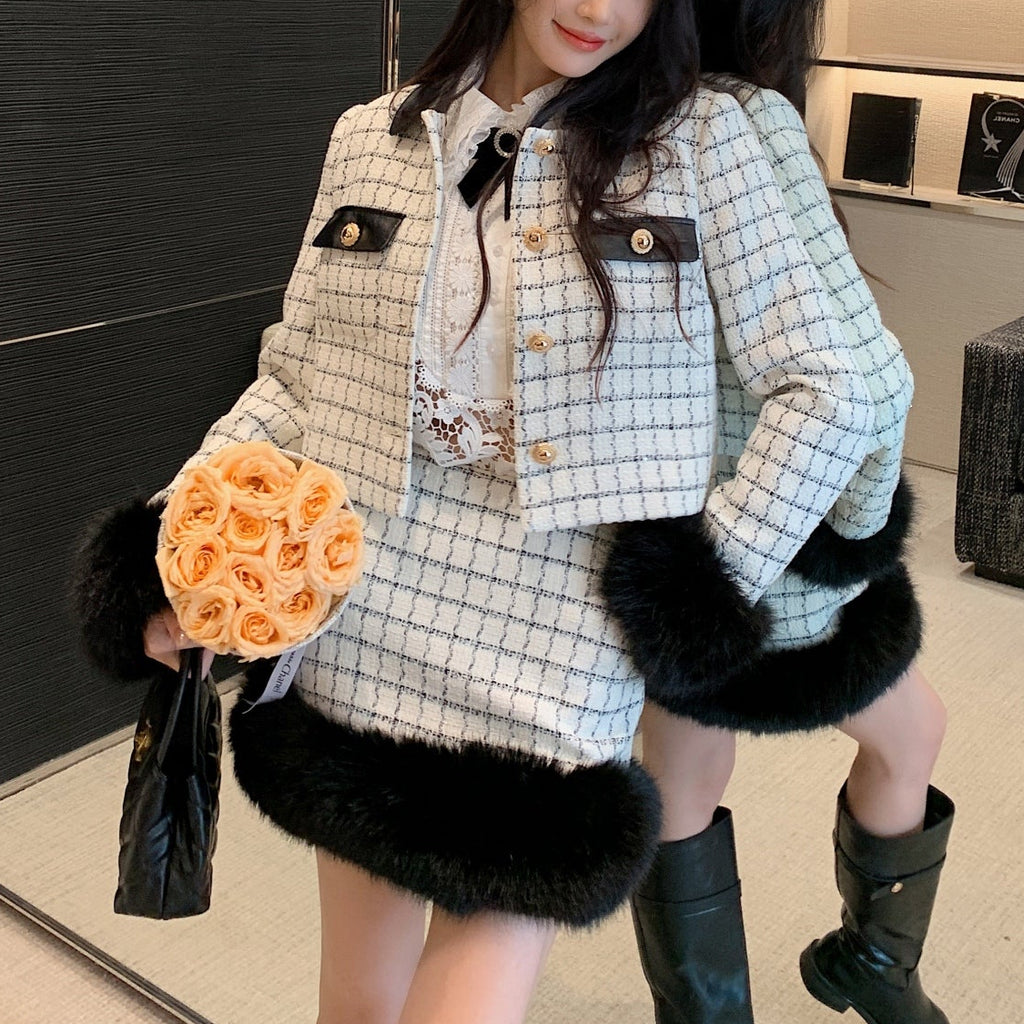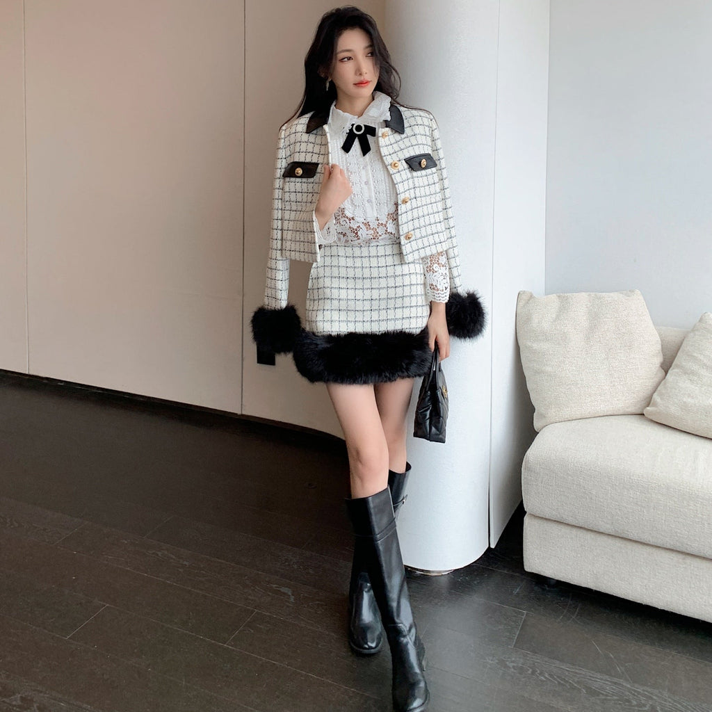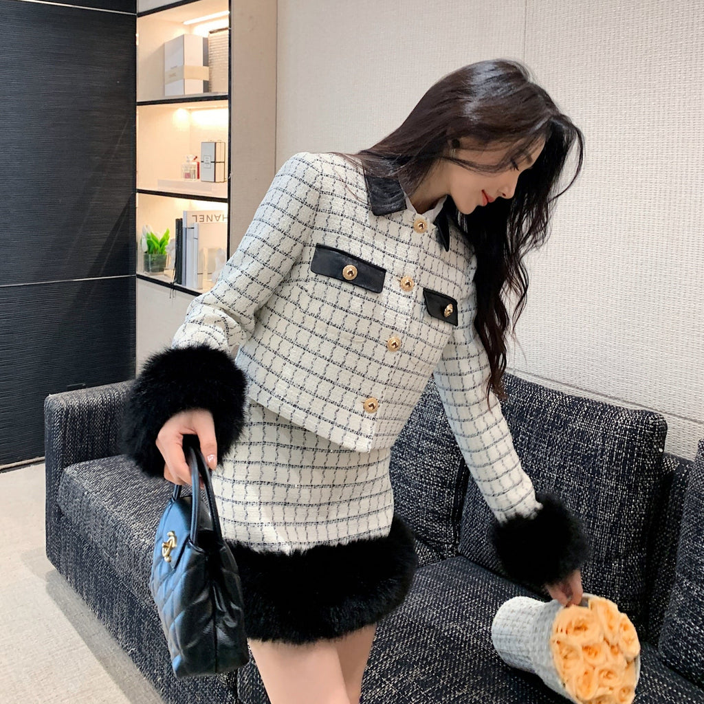 ・袖口と裾に贅沢なファーをまとったお上品セットアップ。