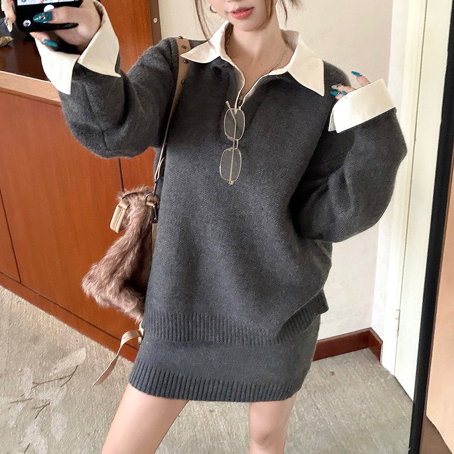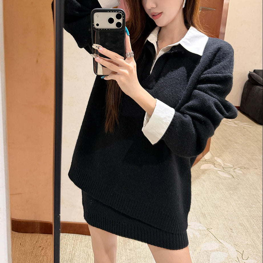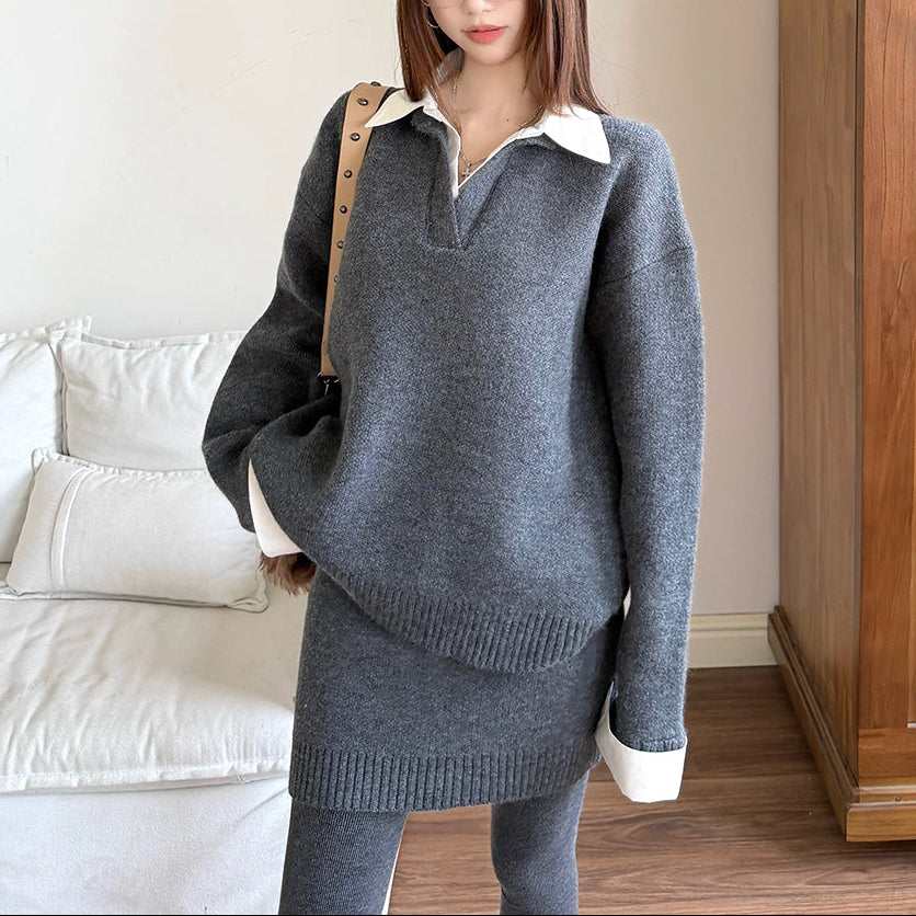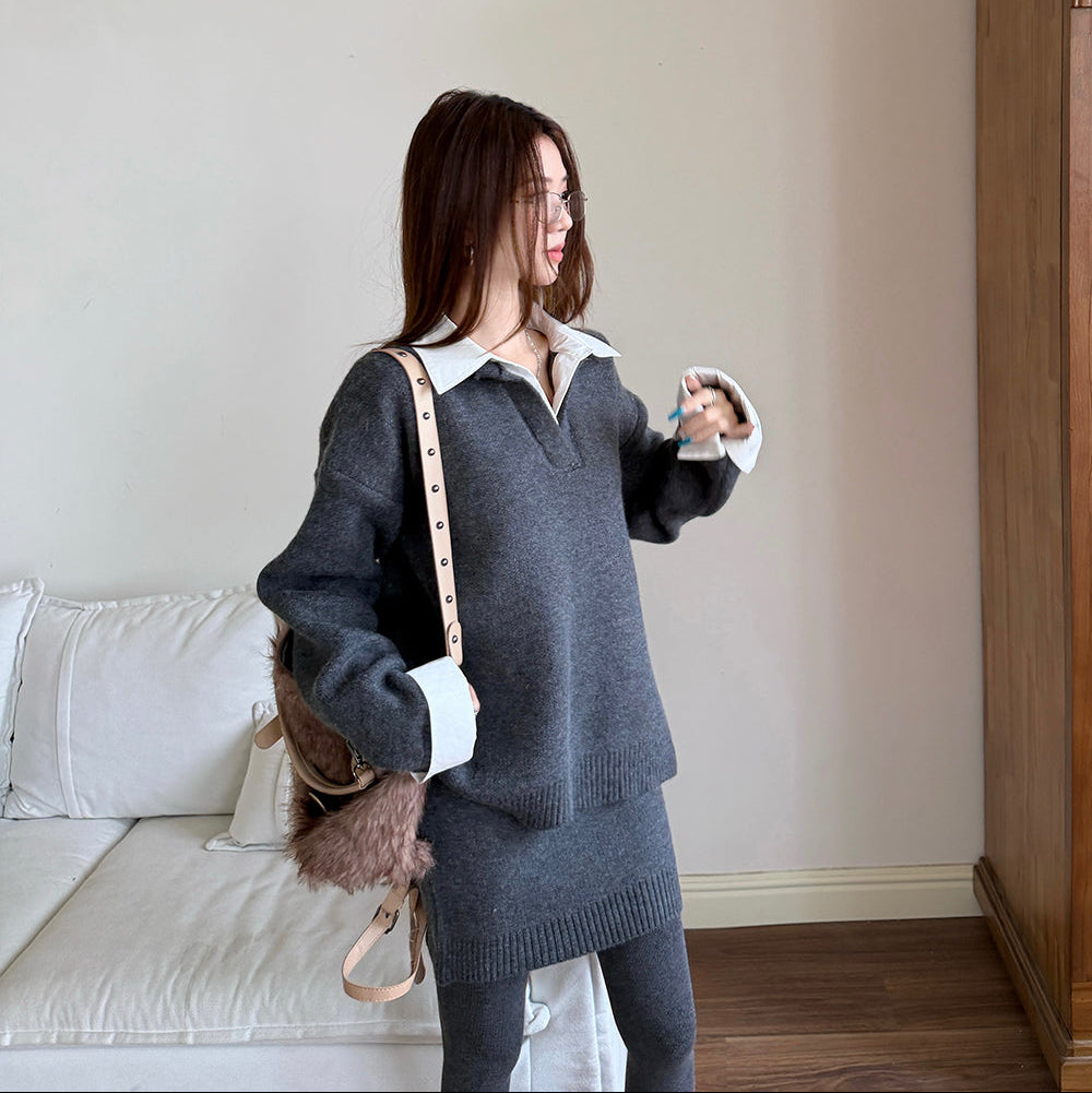 ・人気デザインのシャツドッキングタイプのニットセットアップからVネックバージョンが登場♪