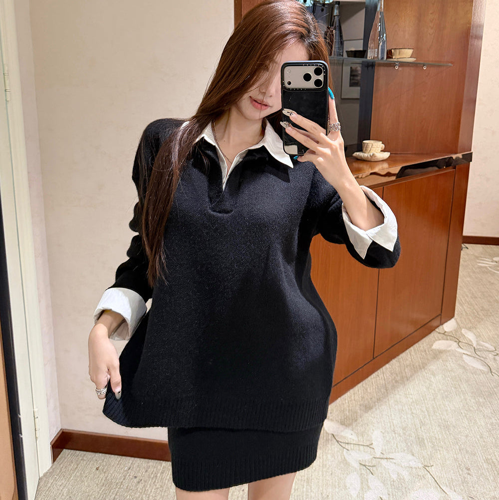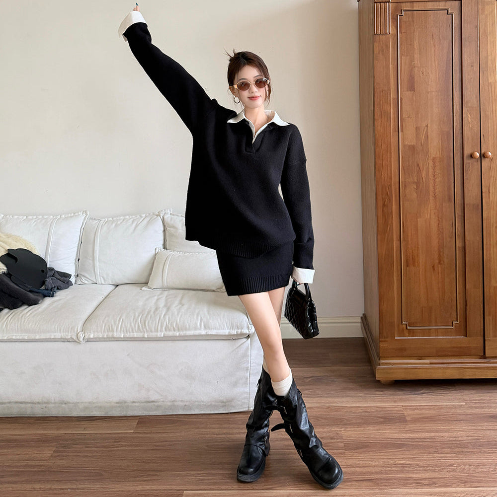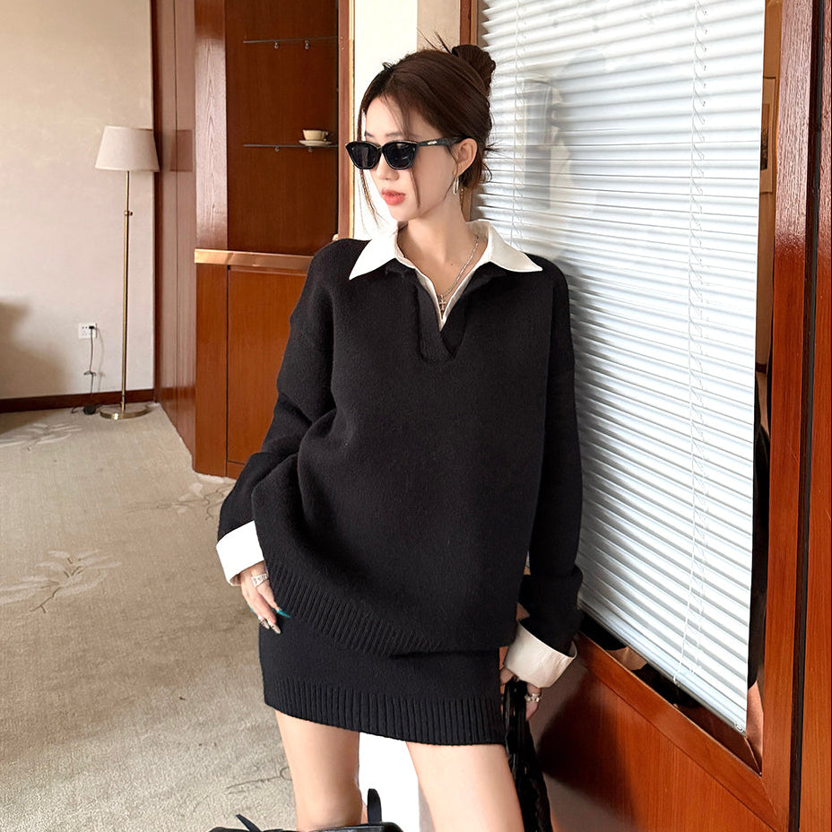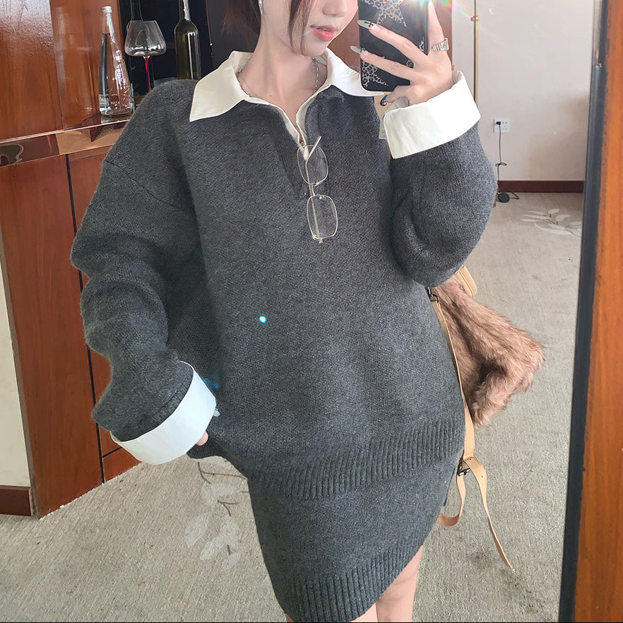 ・人気デザインのシャツドッキングタイプのニットセットアップからVネックバージョンが登場♪