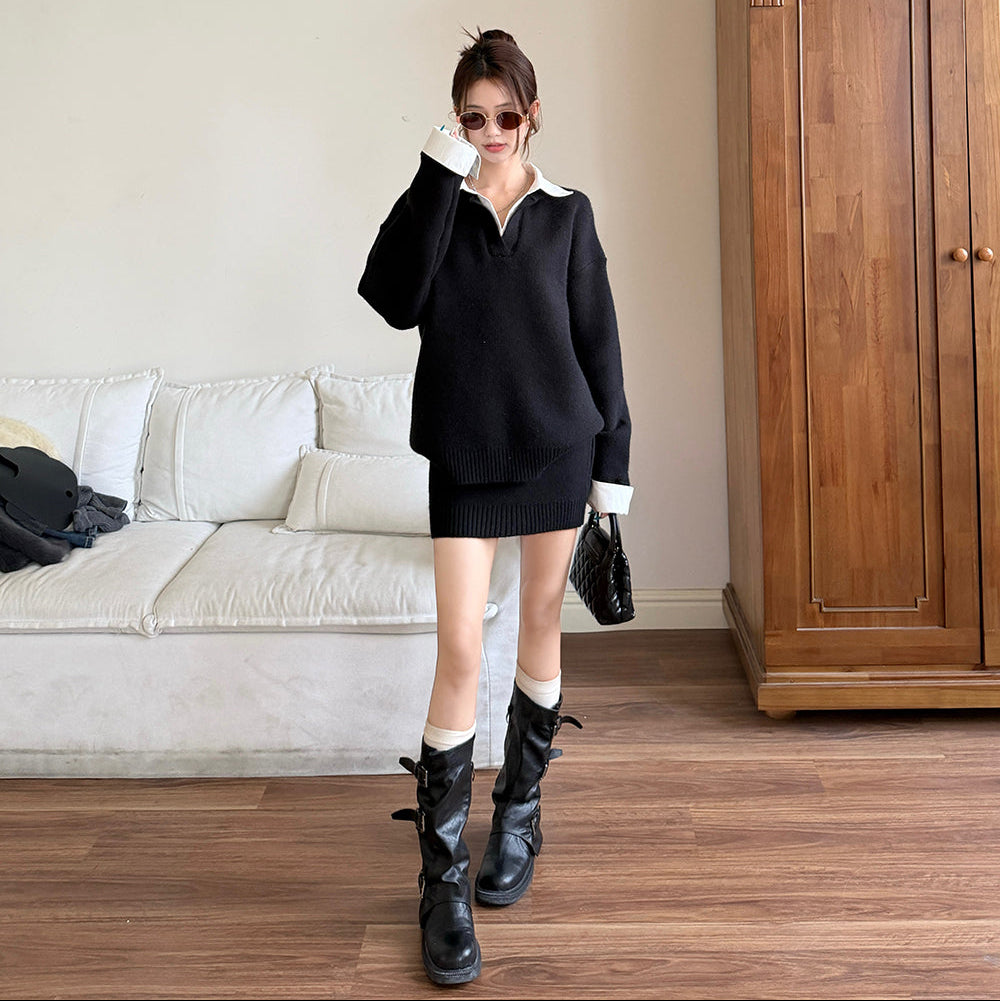シャツドッキングVネックセットアップ(2COLOR)AS1695