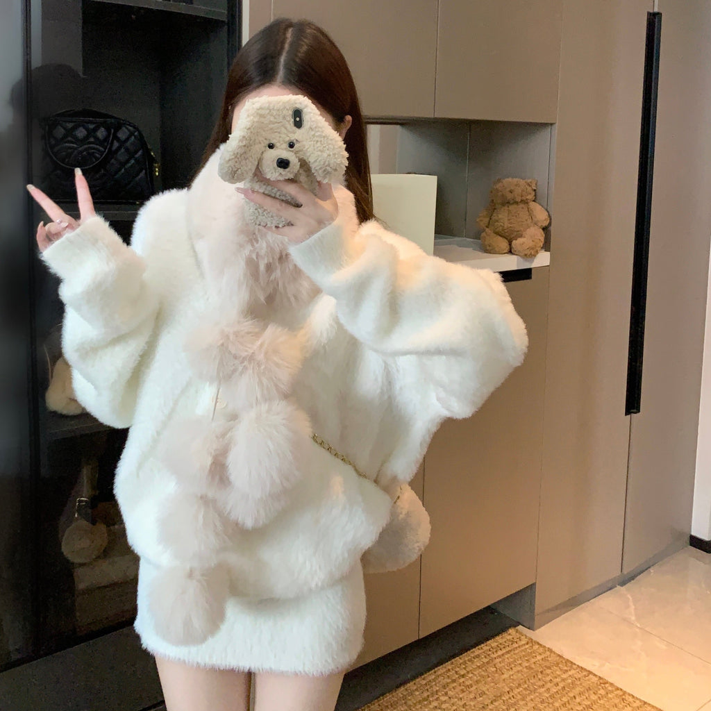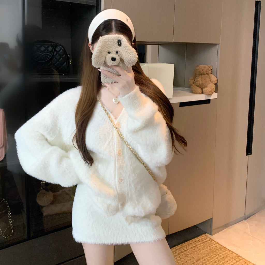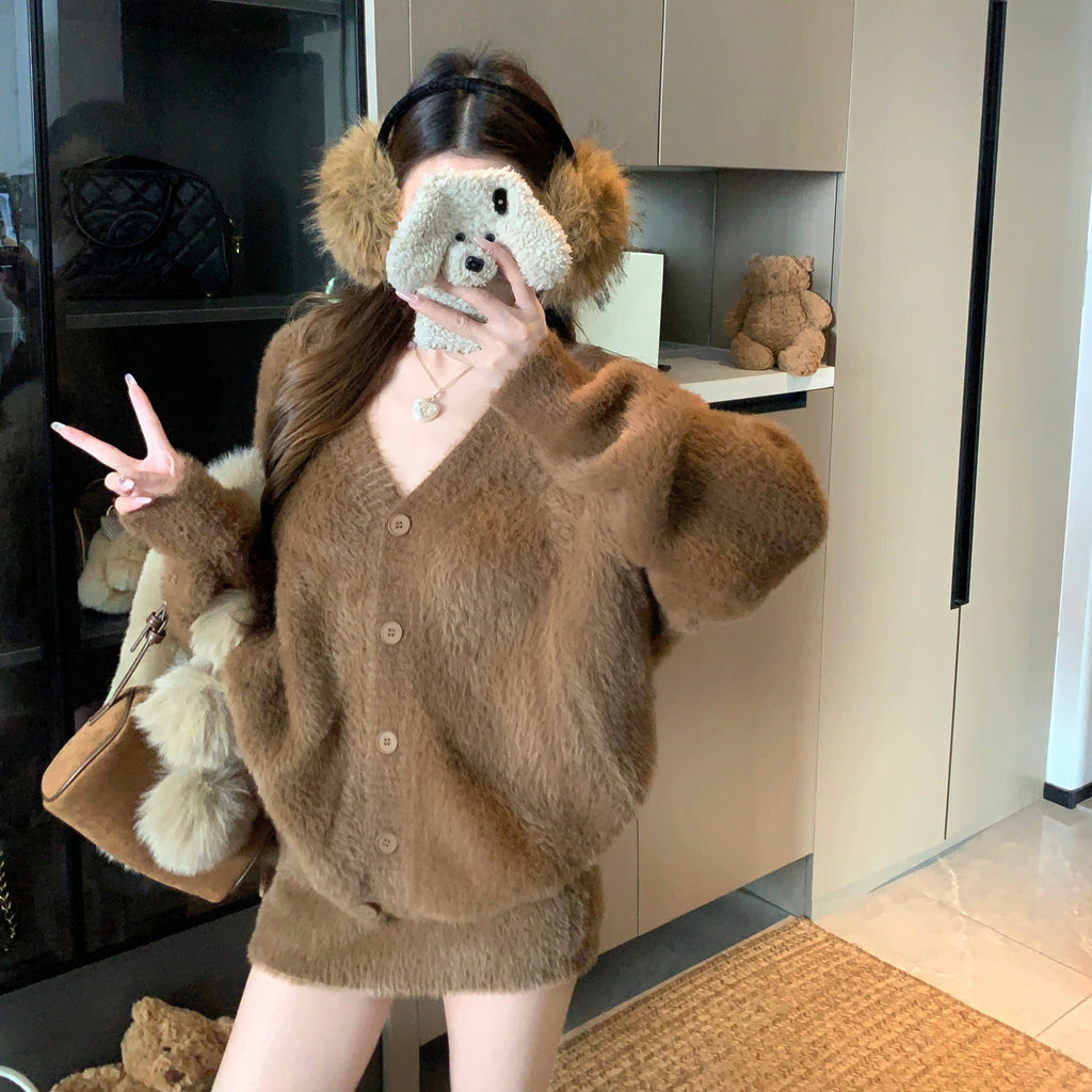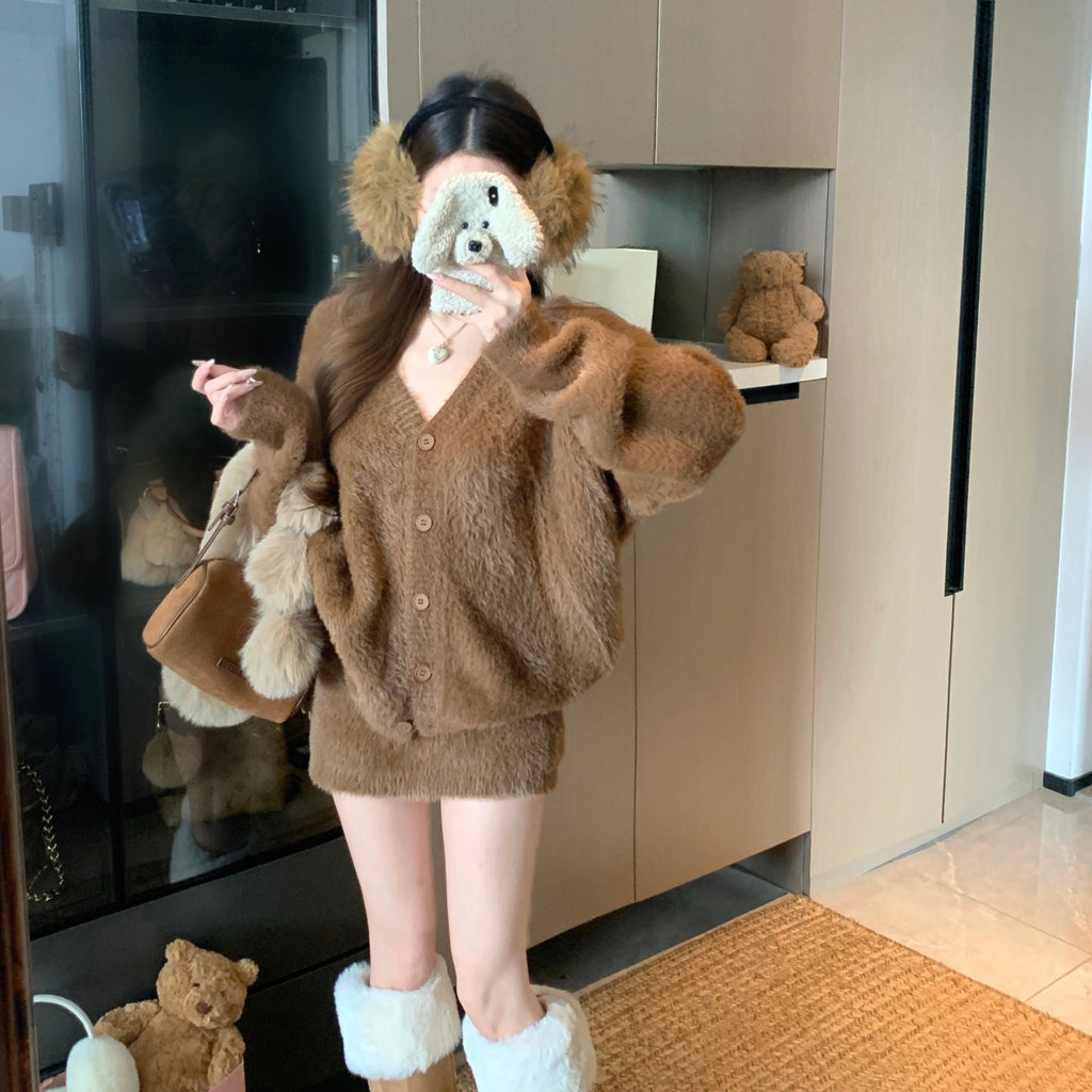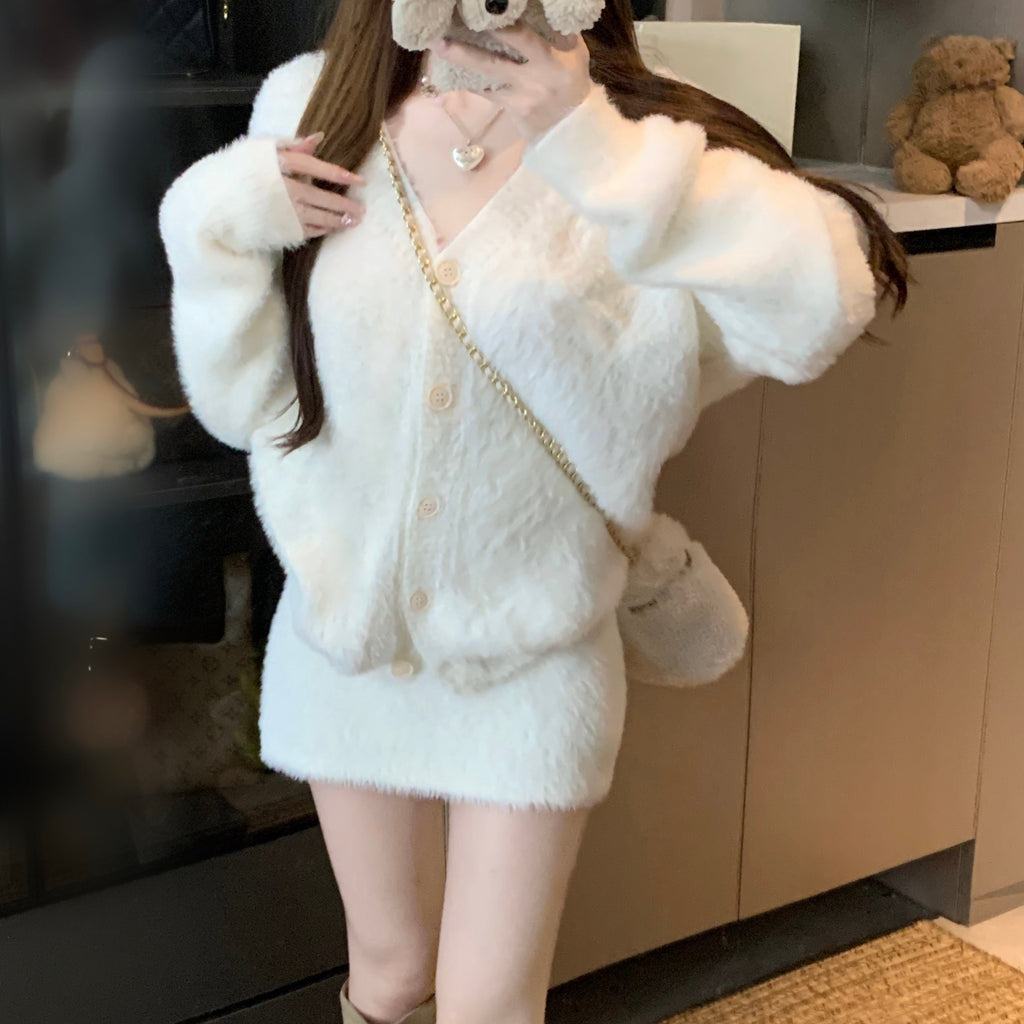 Vネックフェイクファーセットアップ(3COLOR)AS1698