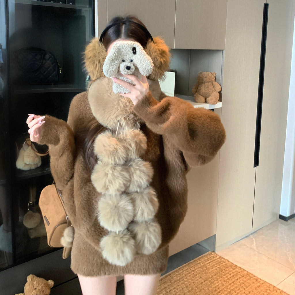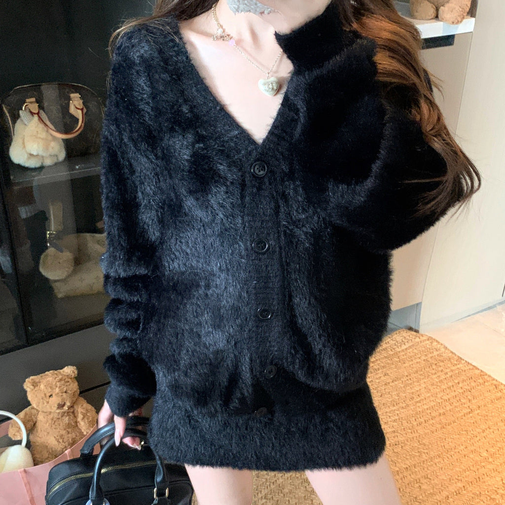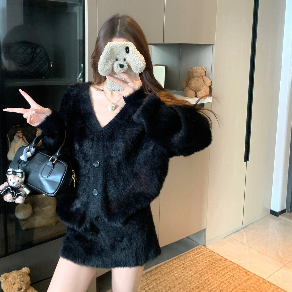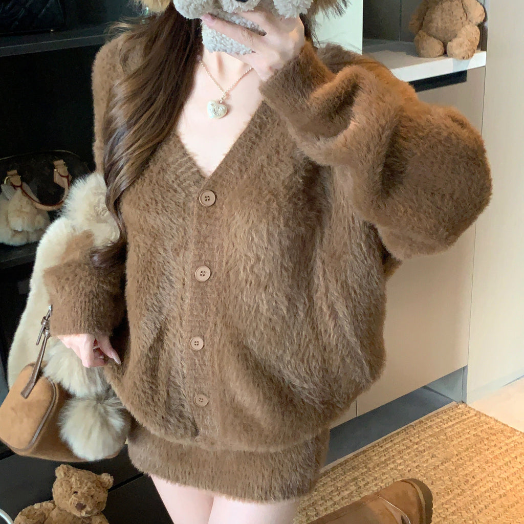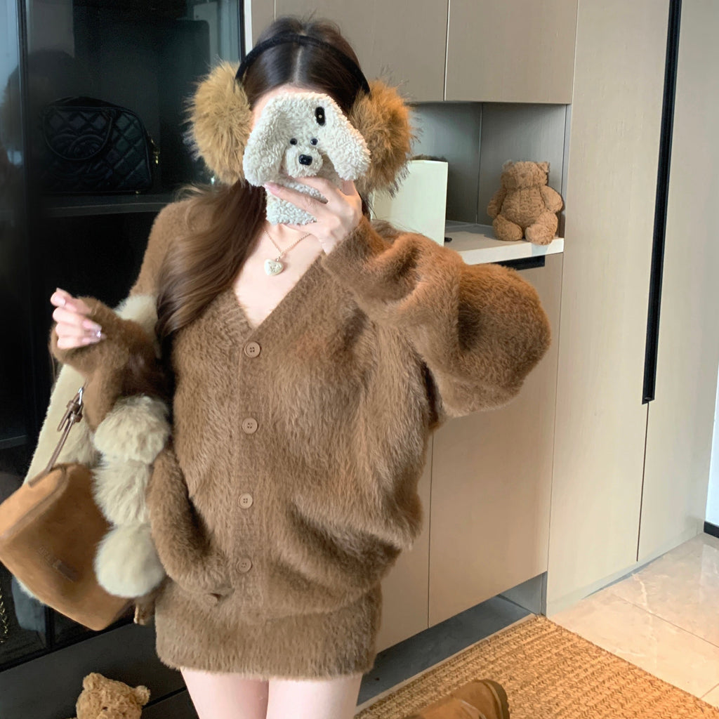 Vネックフェイクファーセットアップ(3COLOR)AS1698