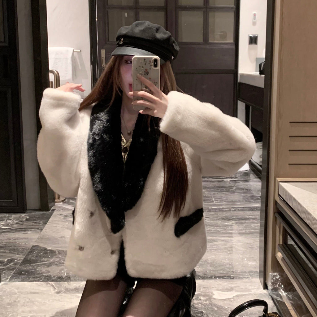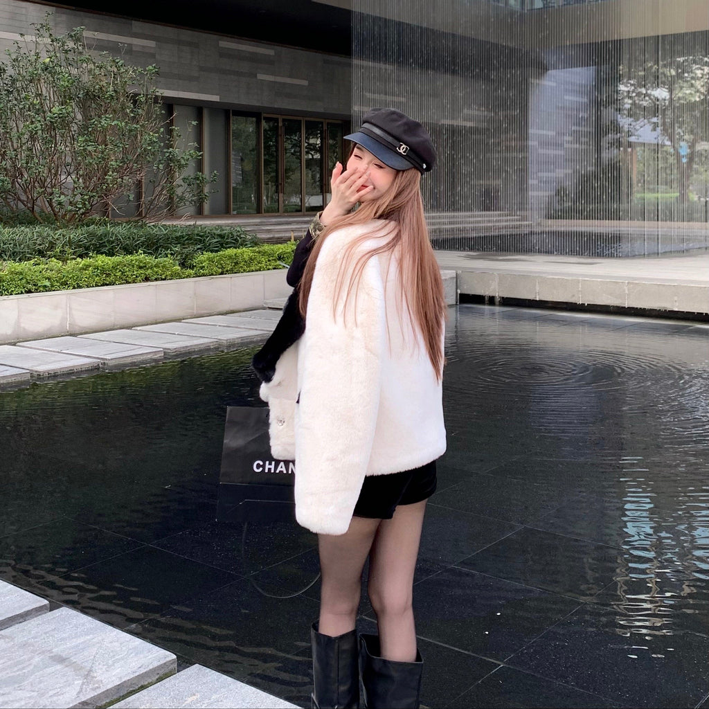 ・韓国ファッションらしいデザインで周りと被らないオシャレファーコート。