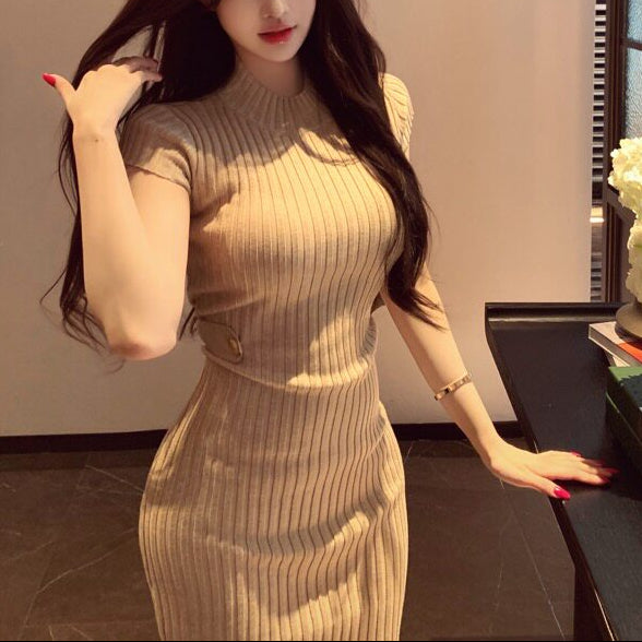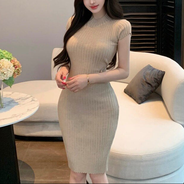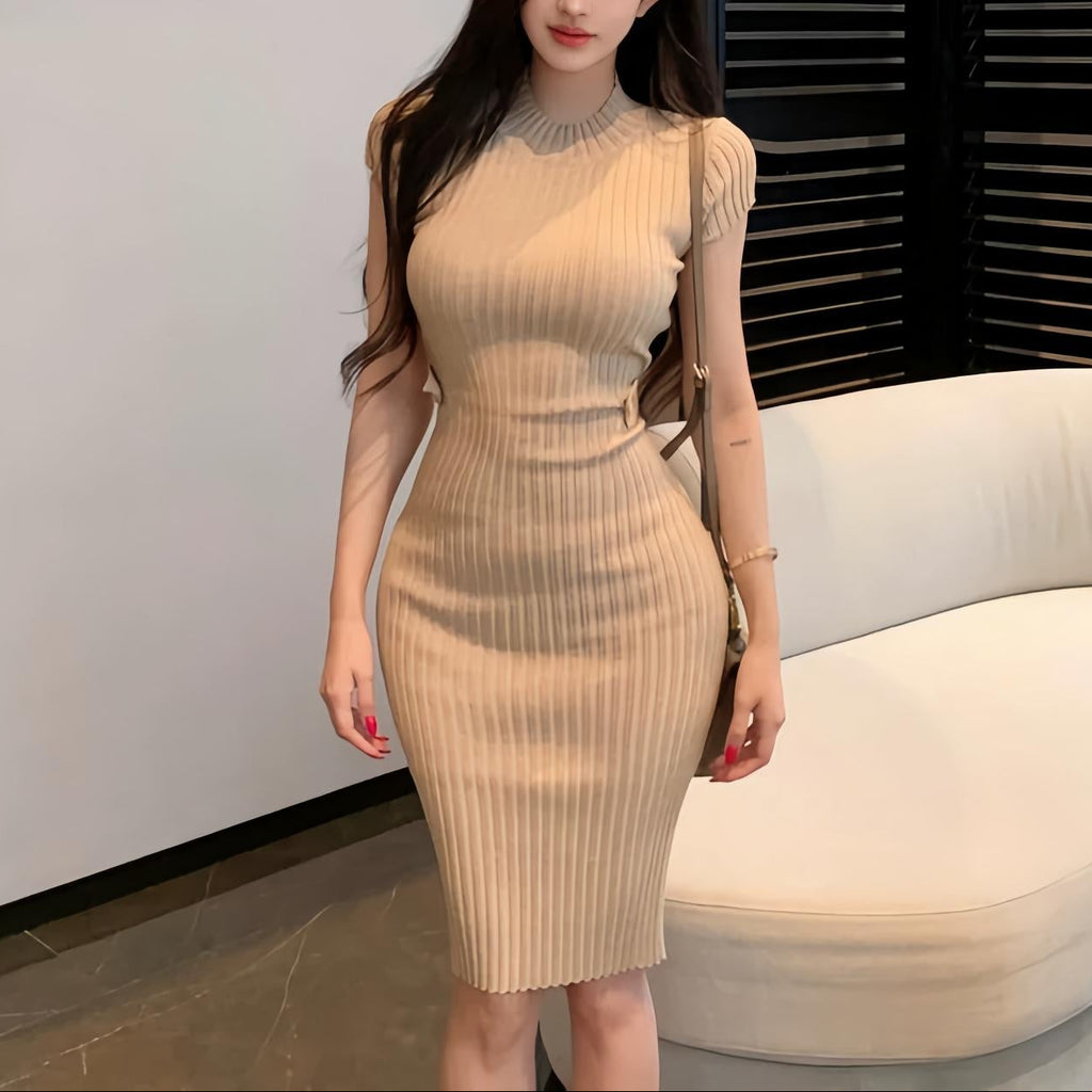 ・上品で落ち着いた大人の女性コーデが完成するミディ丈ニットワンピース。