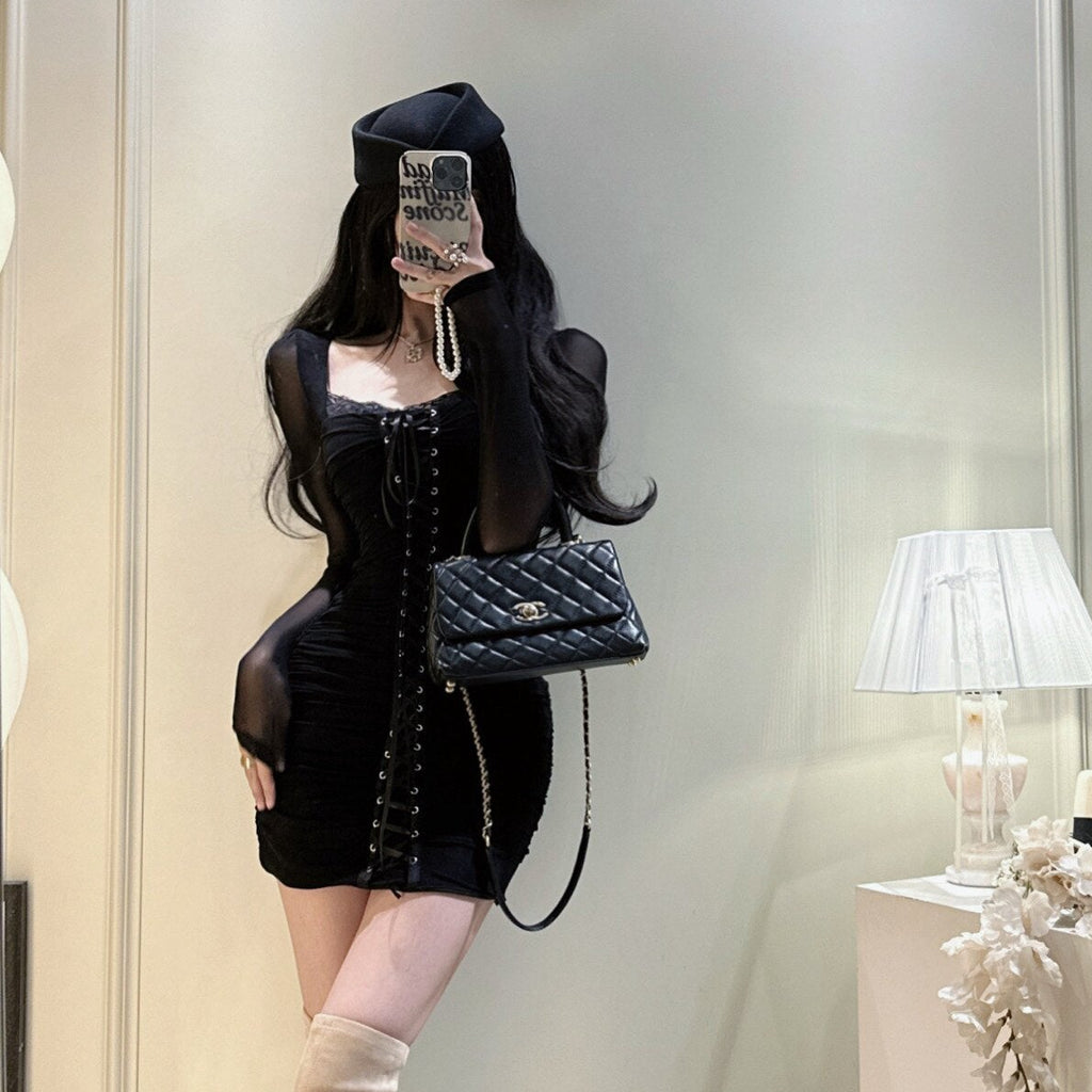 レースアップシースルーワンピース(2COLOR)AO1840