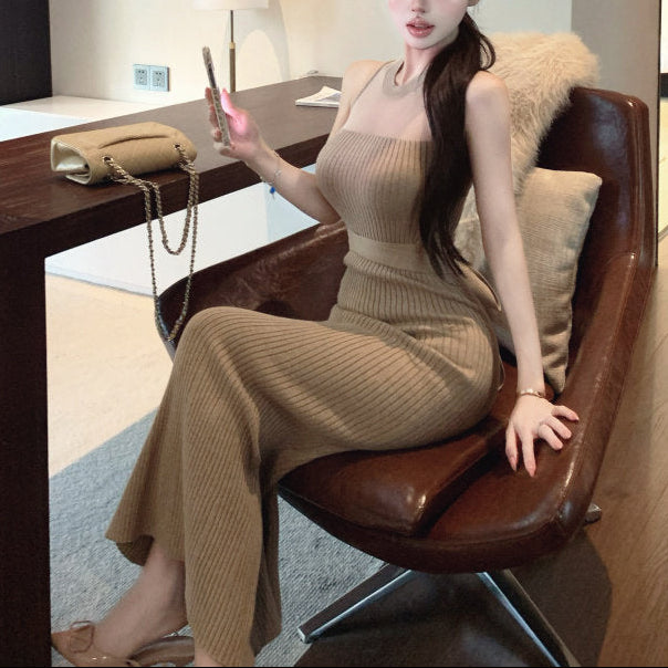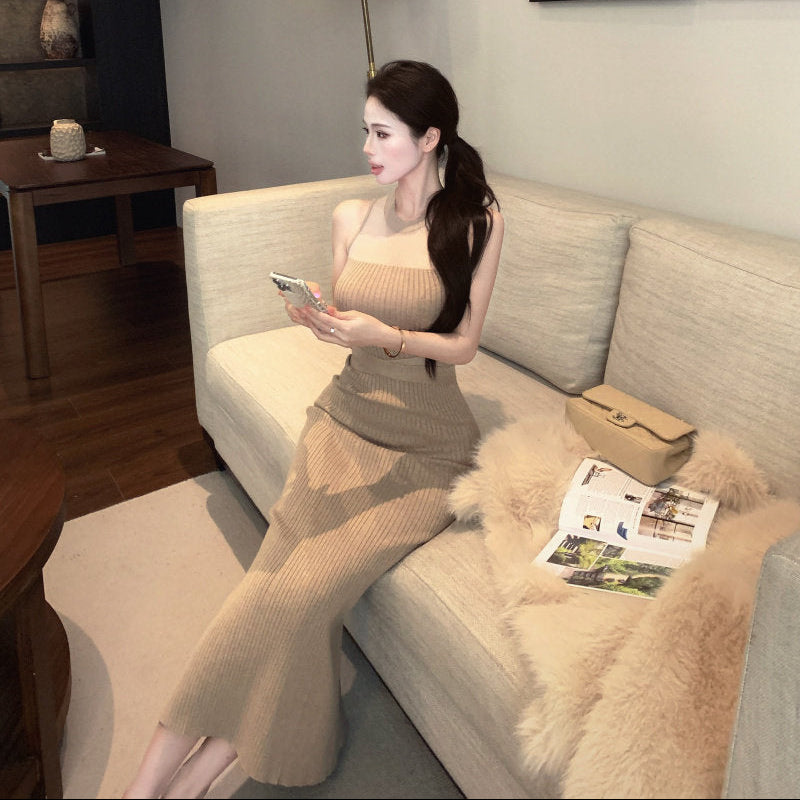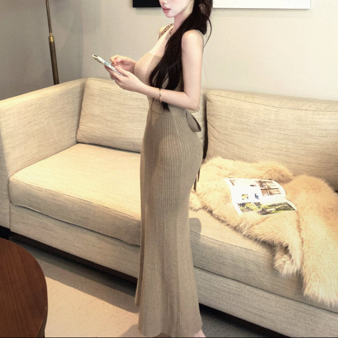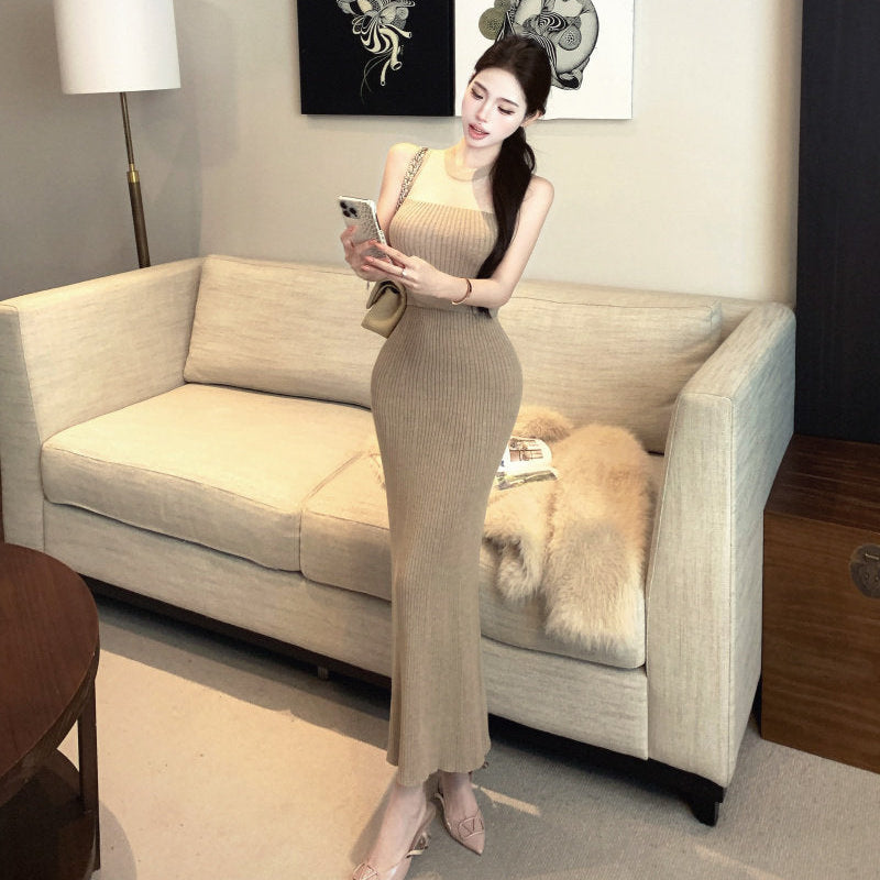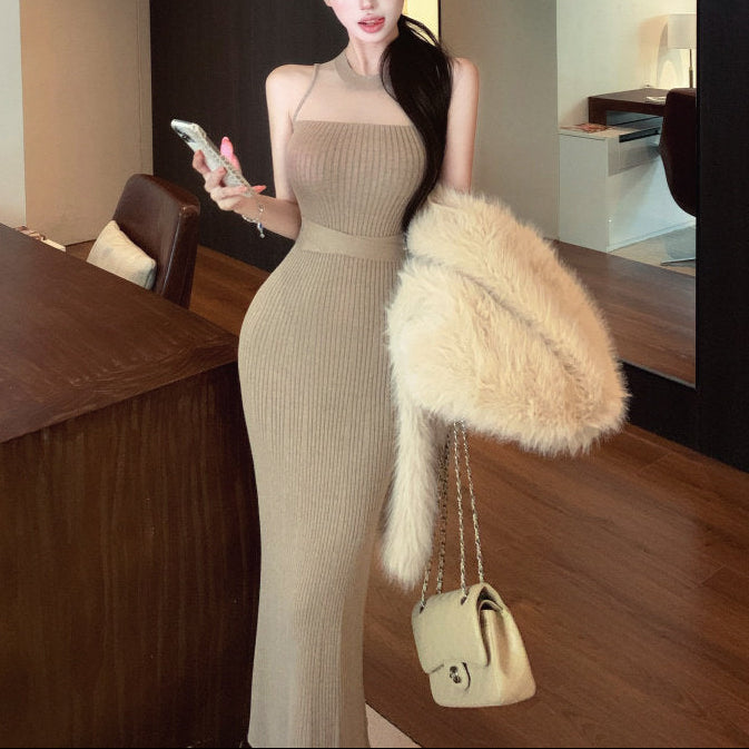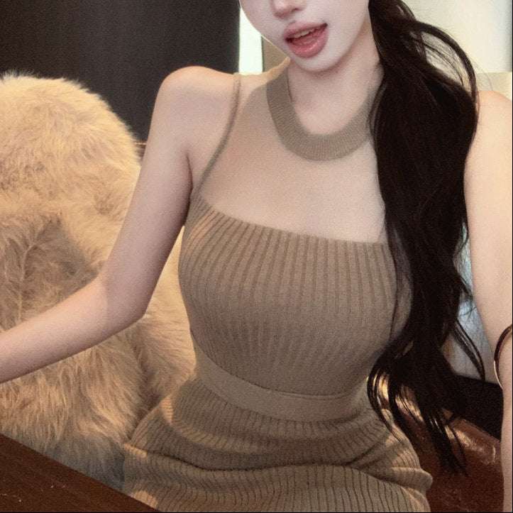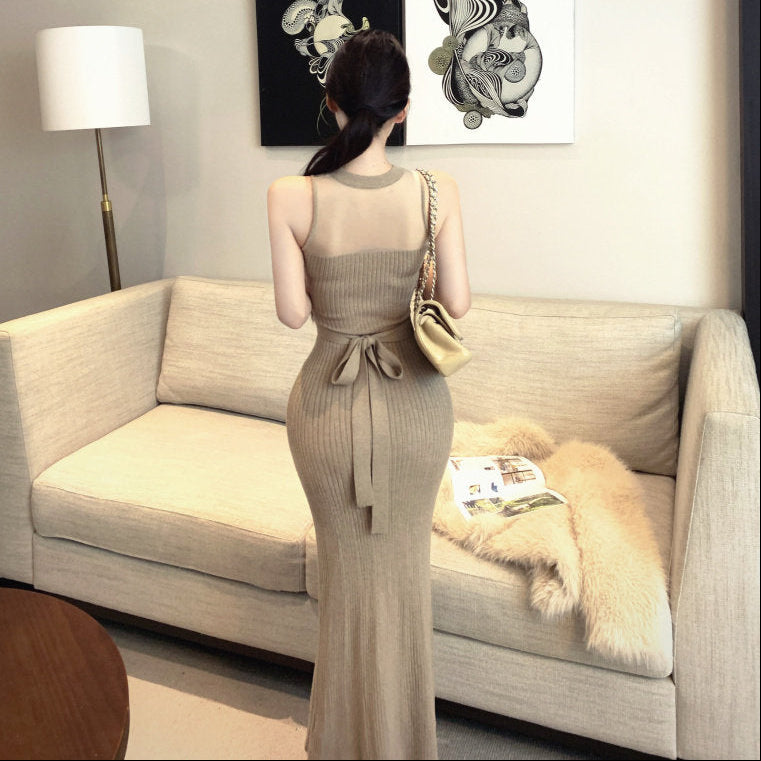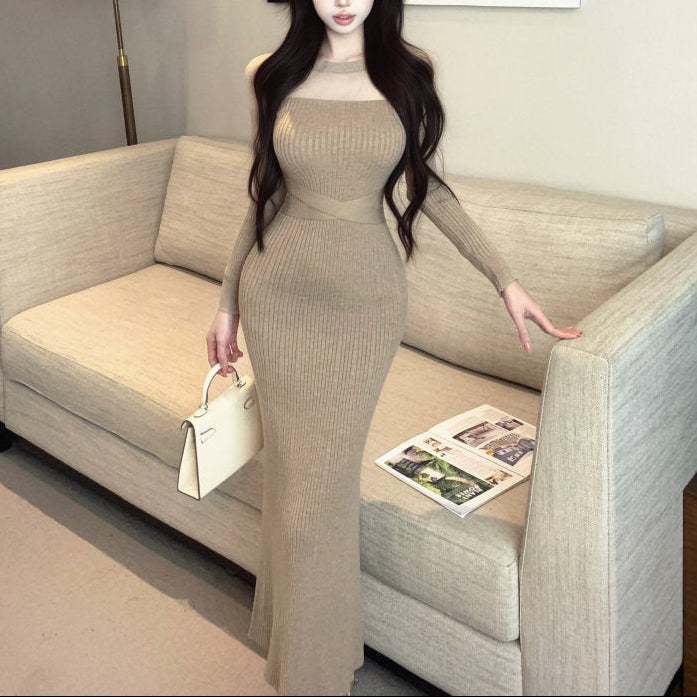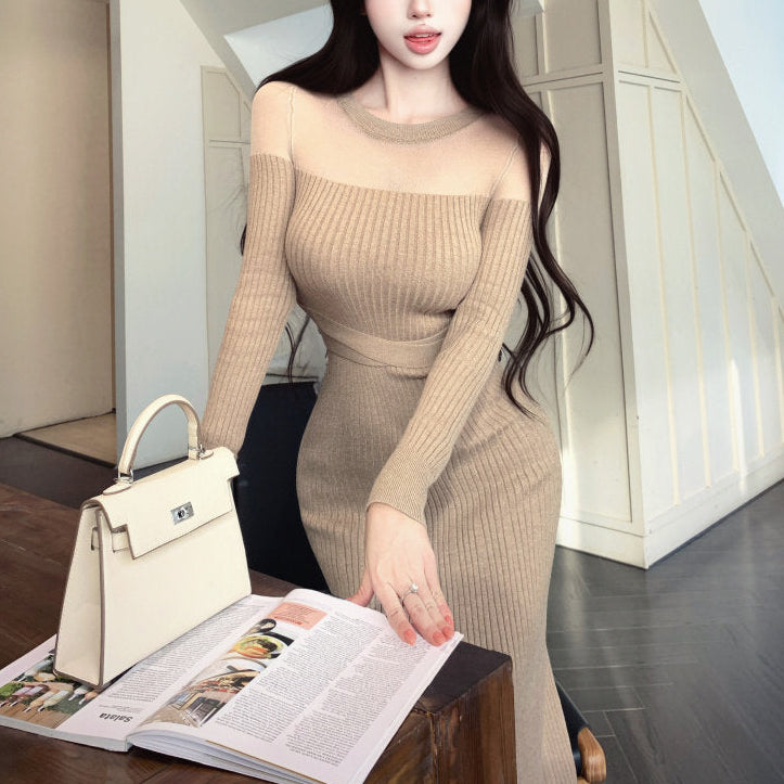 ・デコルテ部分がシースルーになっていて程よい肌見せ感が魅力のニットワンピース。