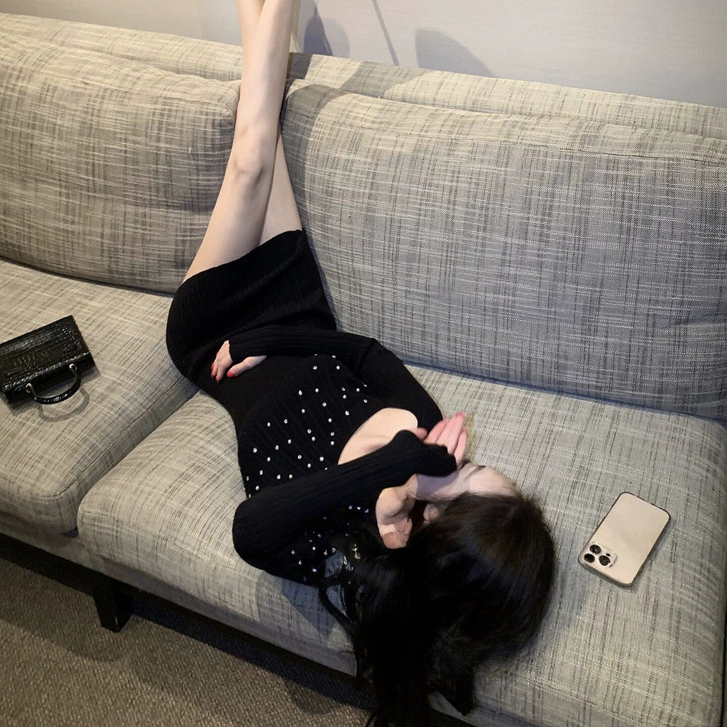 カッティングビジューワンピース(2COLOR)AO1845