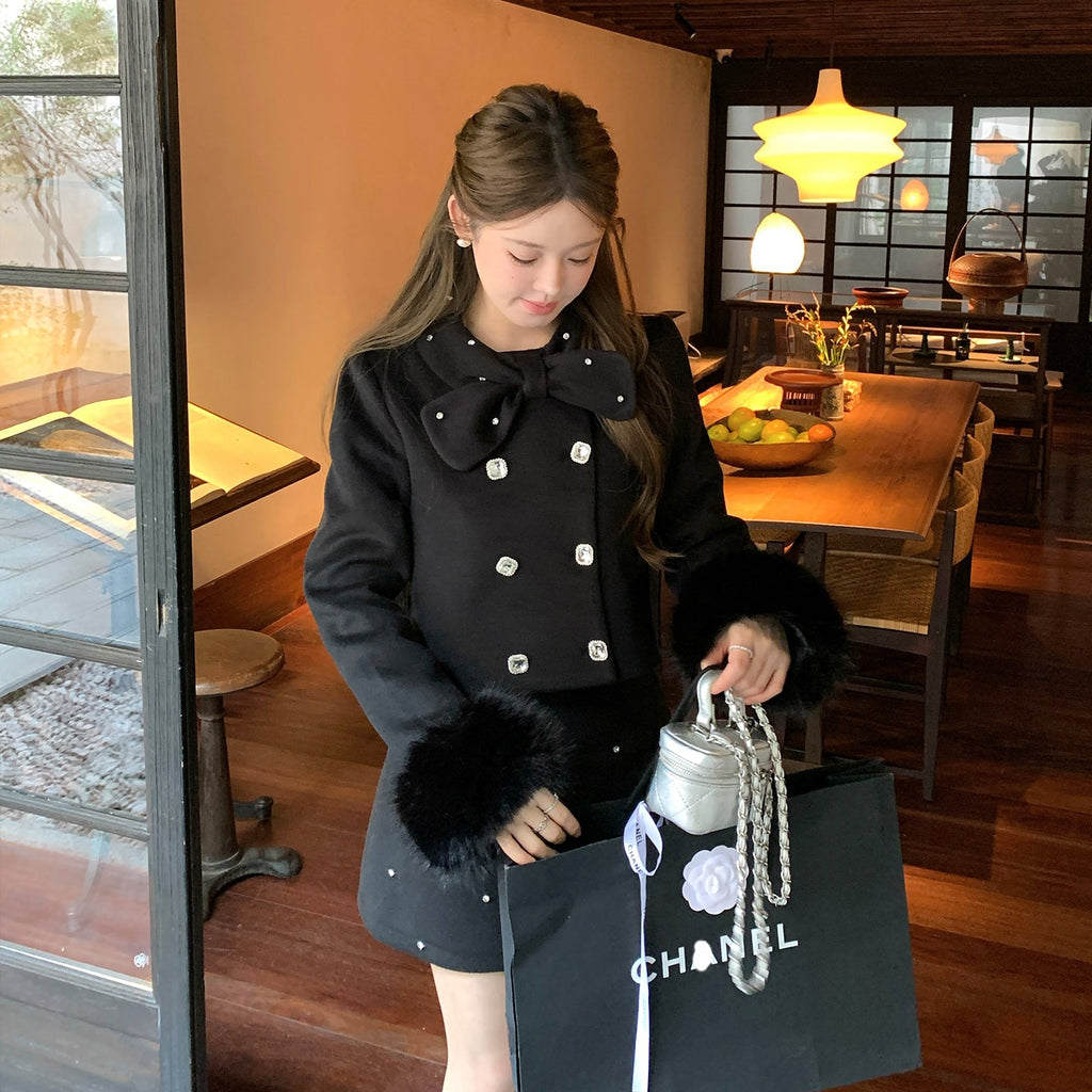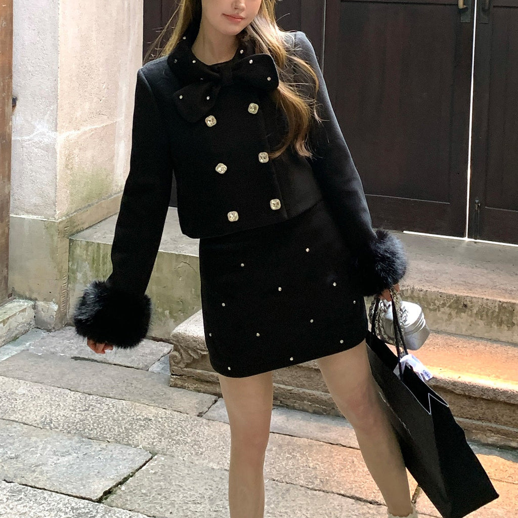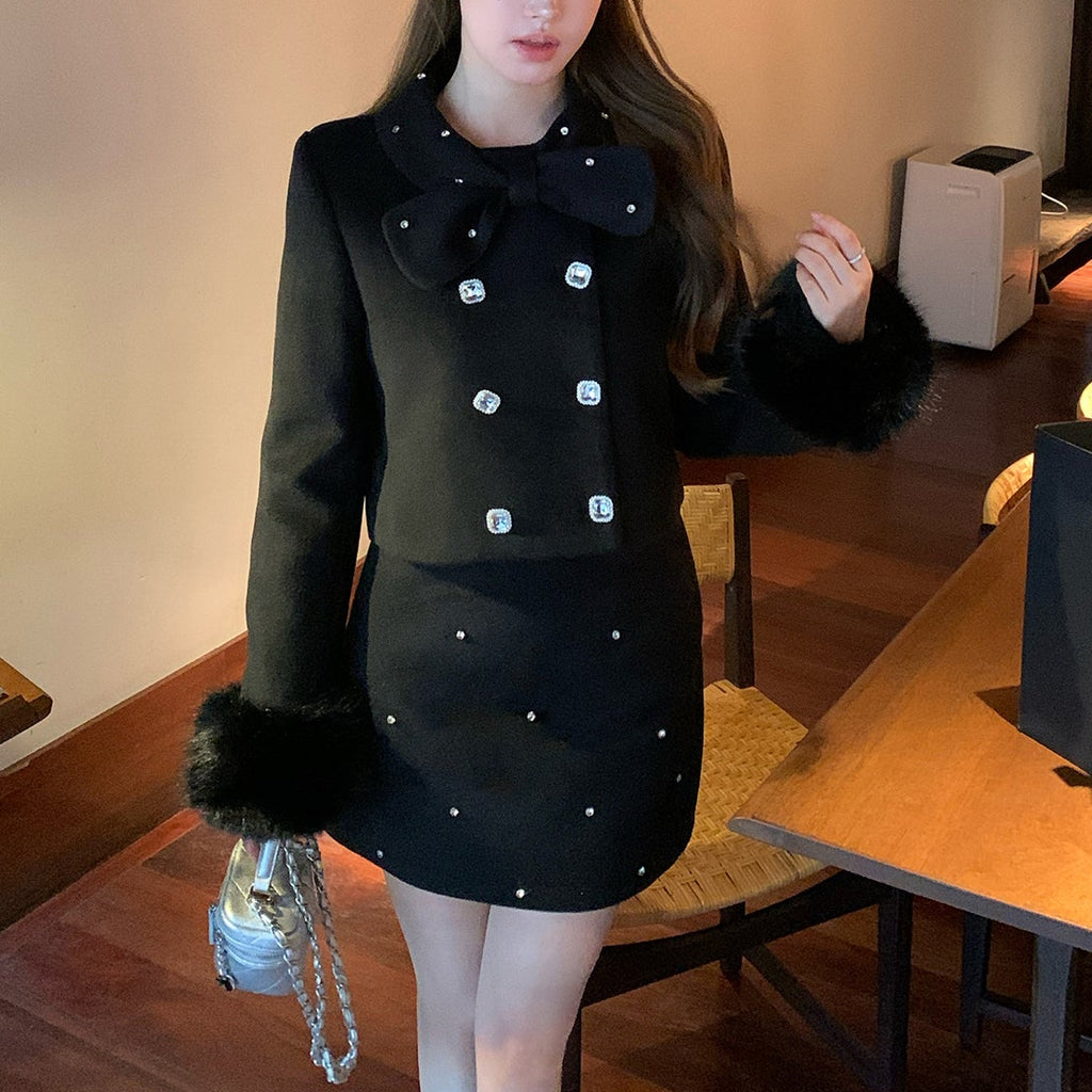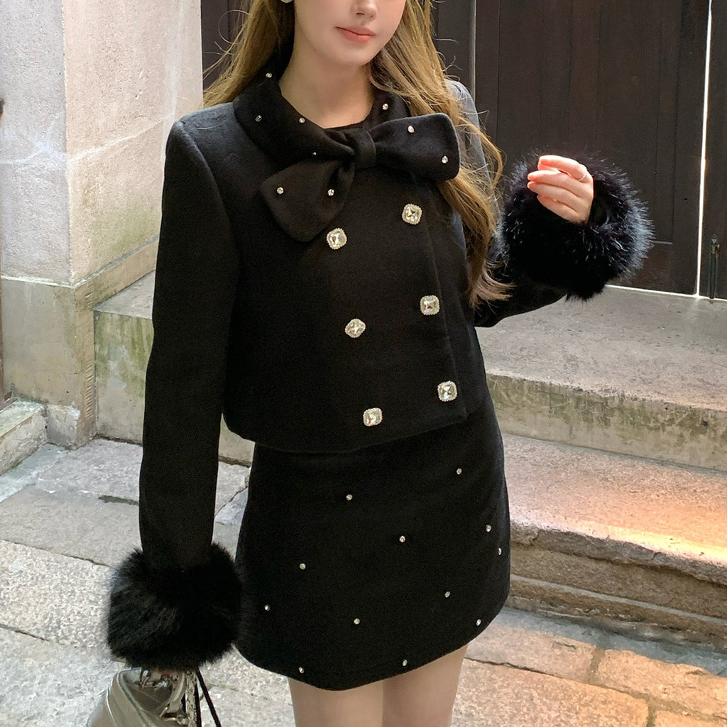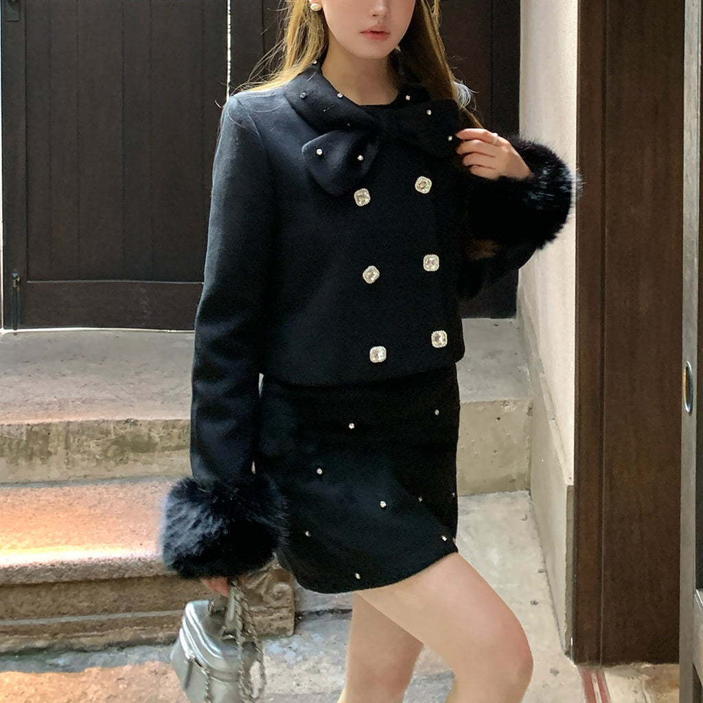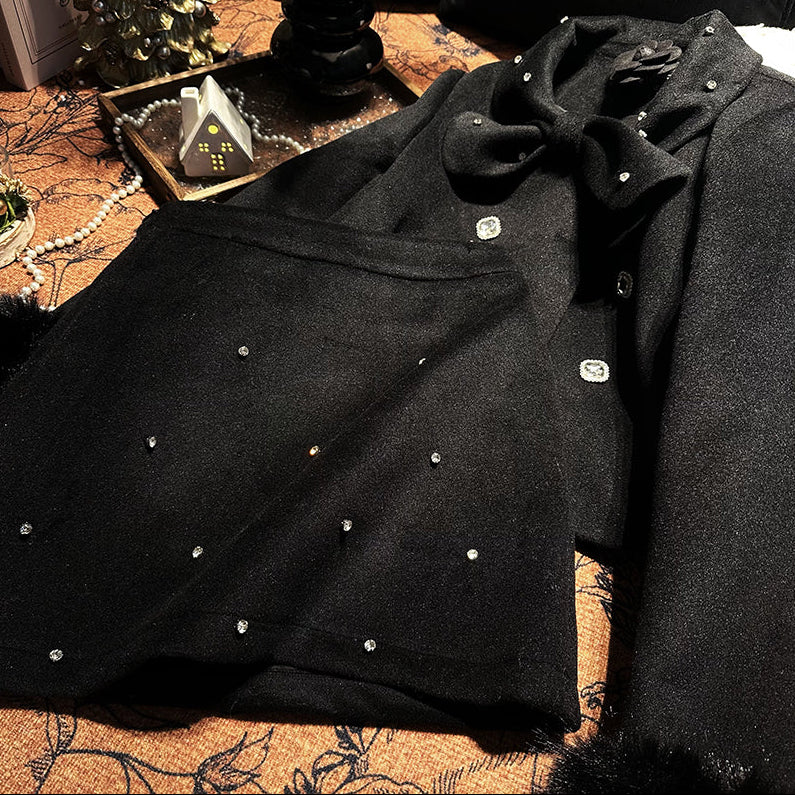 ・華やかな大ぶりビジューが可愛いウール地のセットアップ♡