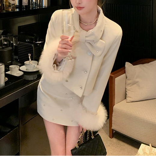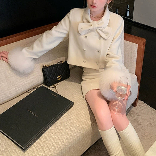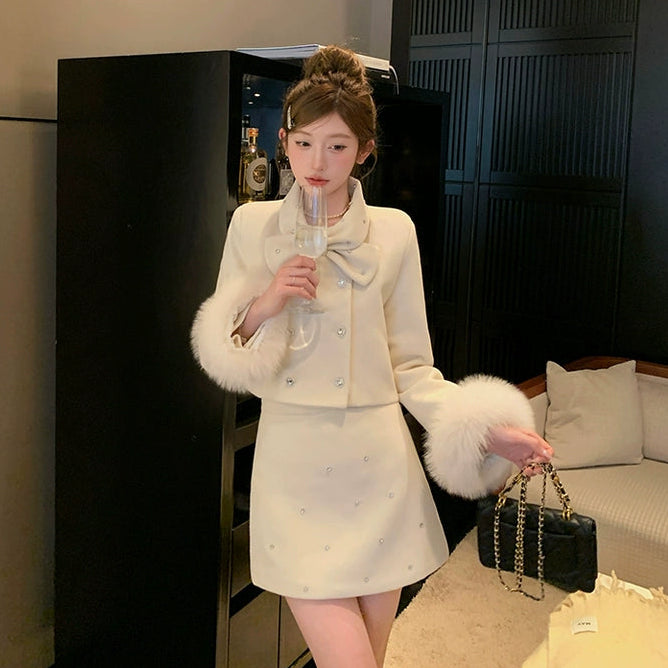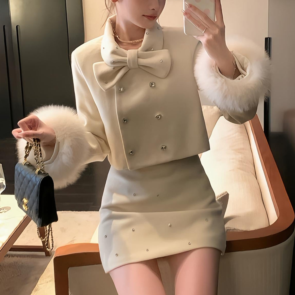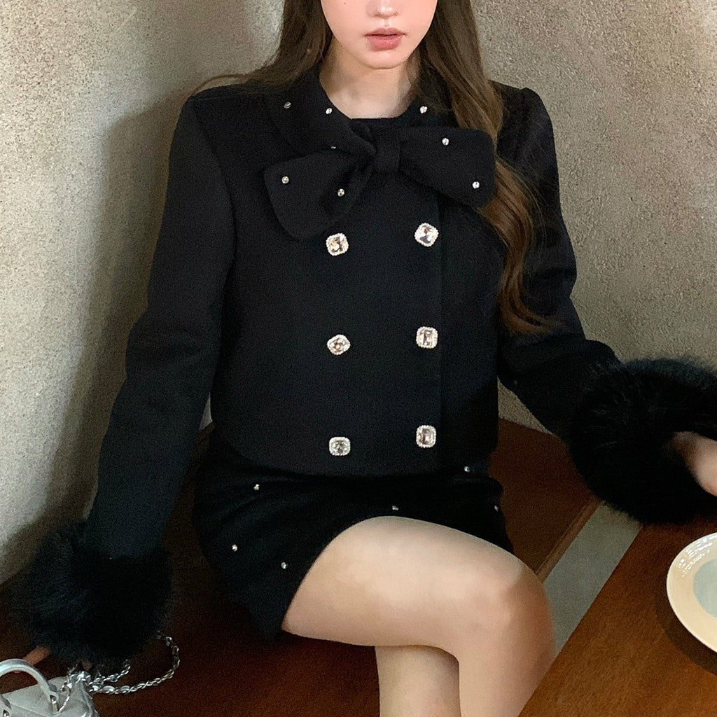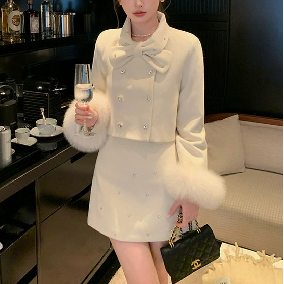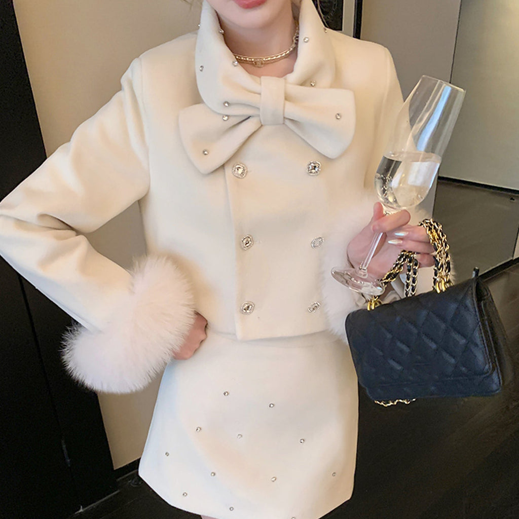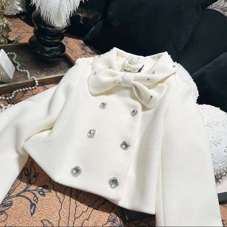 ・華やかな大ぶりビジューが可愛いウール地のセットアップ♡