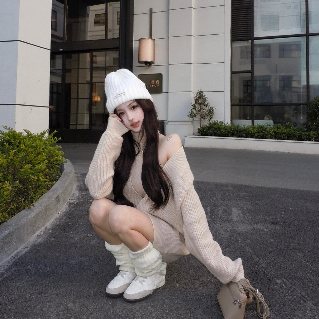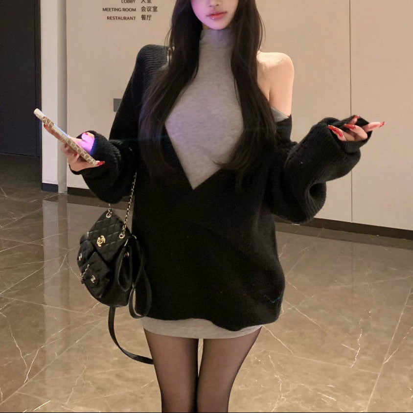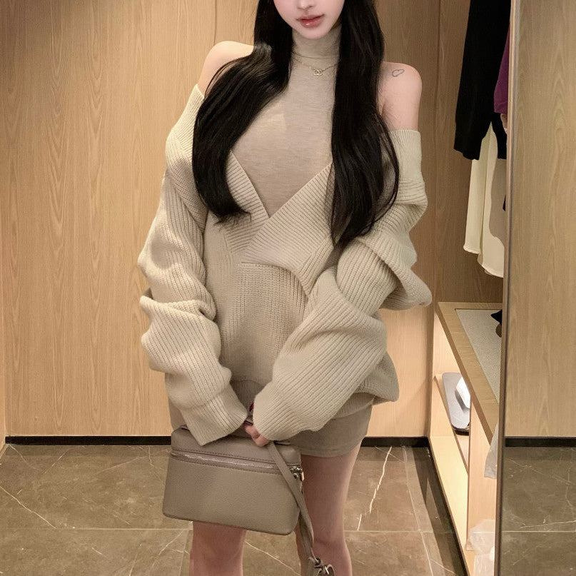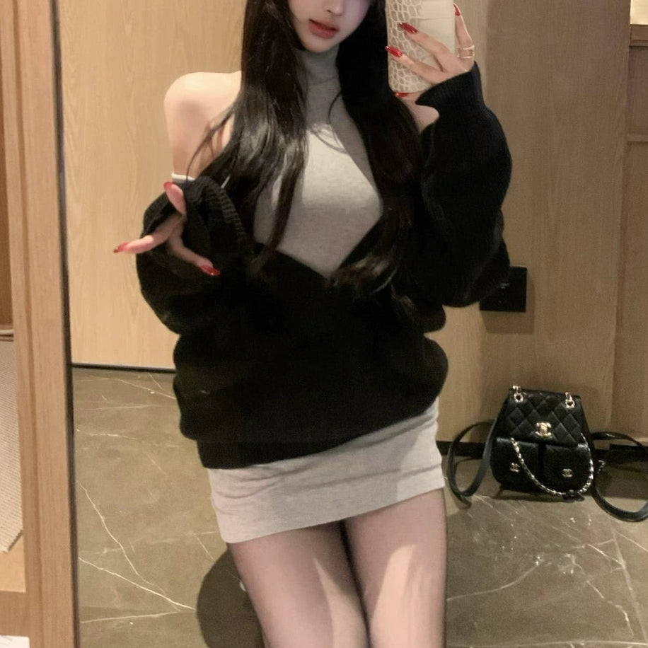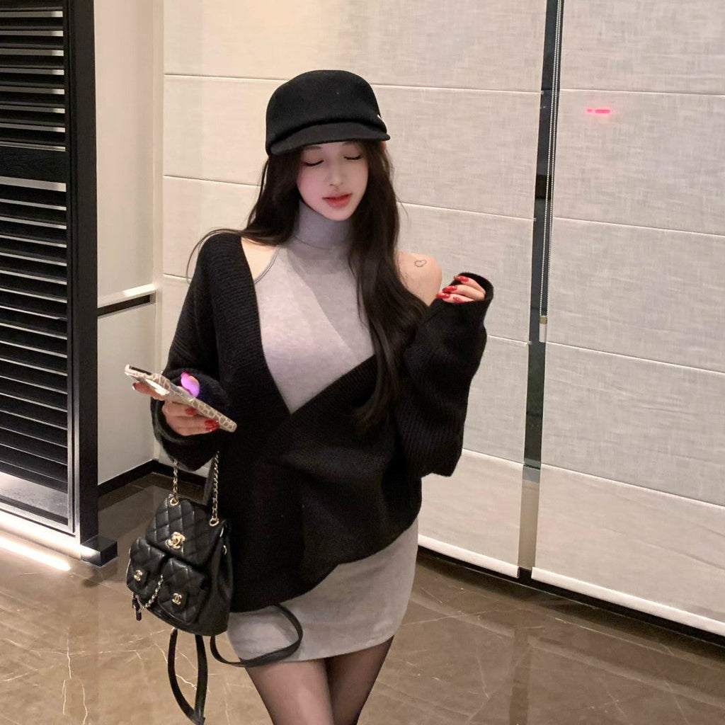 Vネックニット+タイトワンピース(2COLOR)AS1706