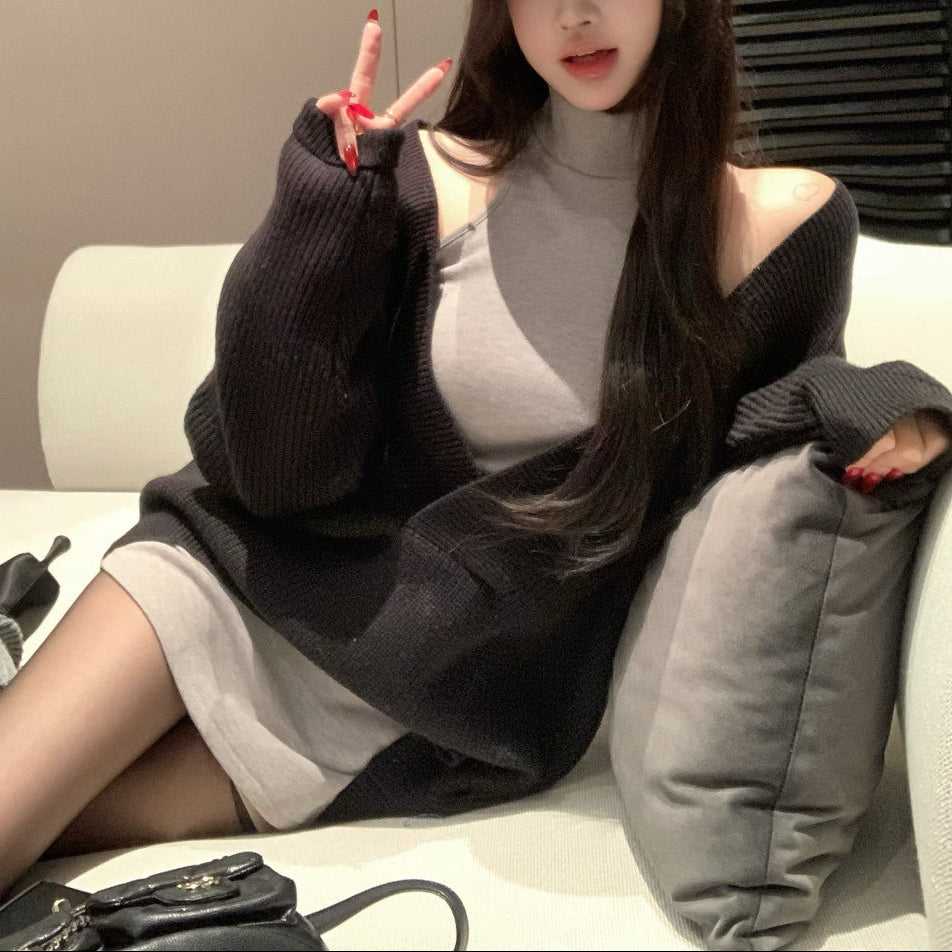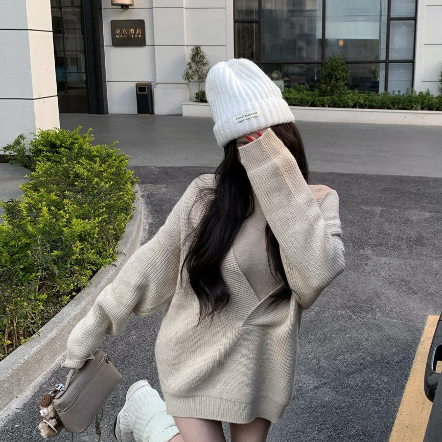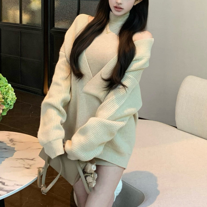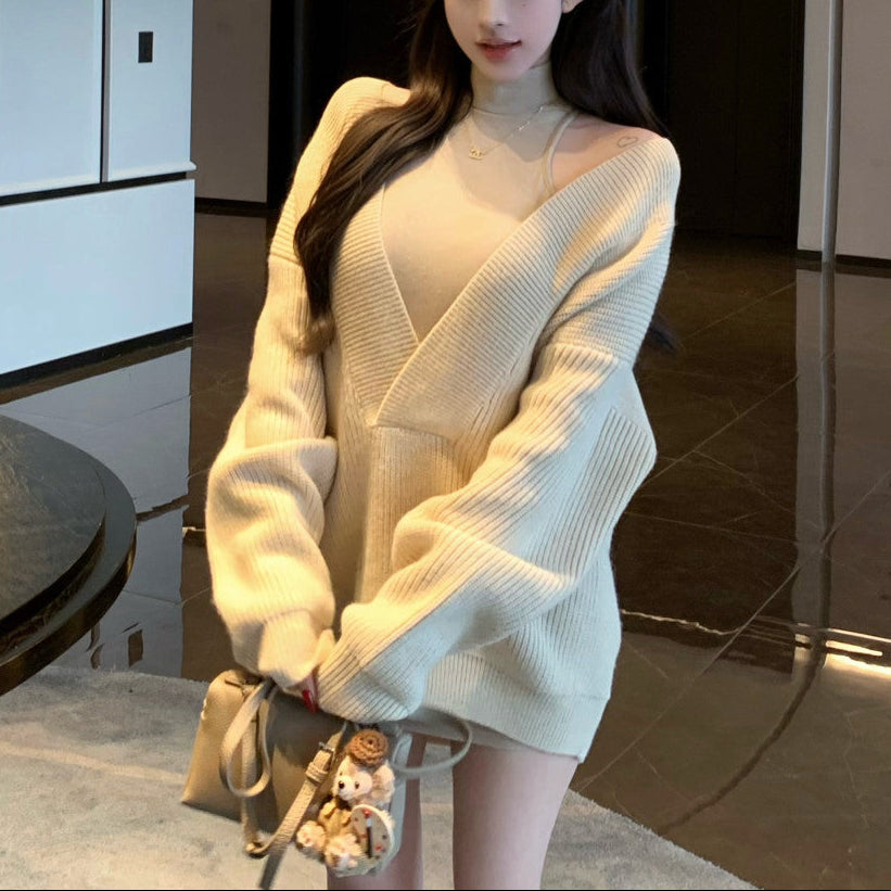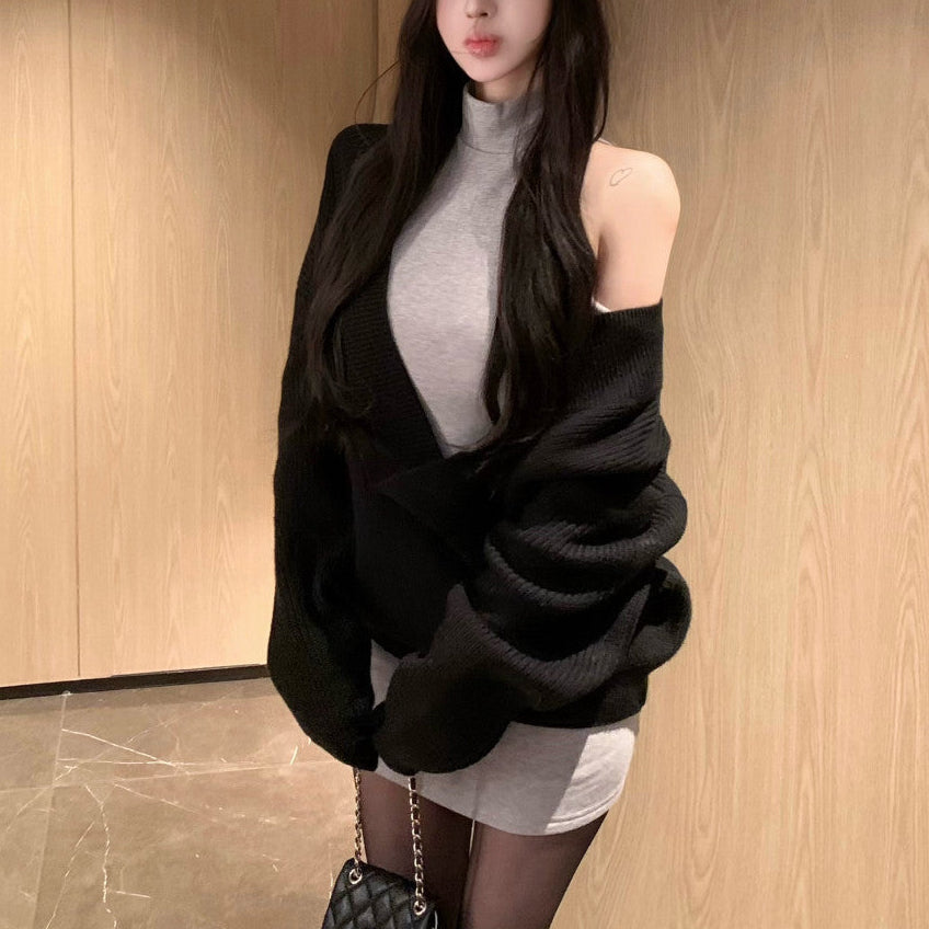 Vネックニット+タイトワンピース(2COLOR)AS1706