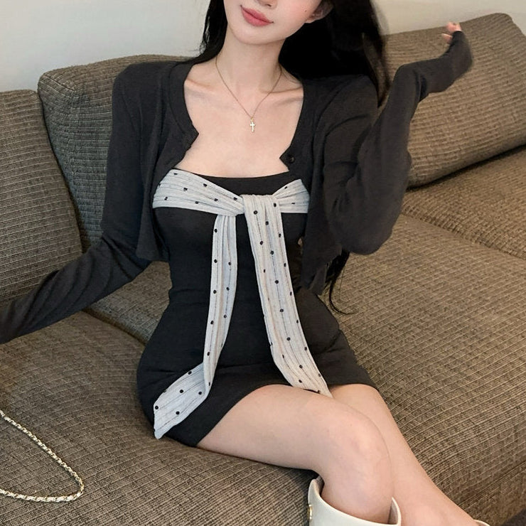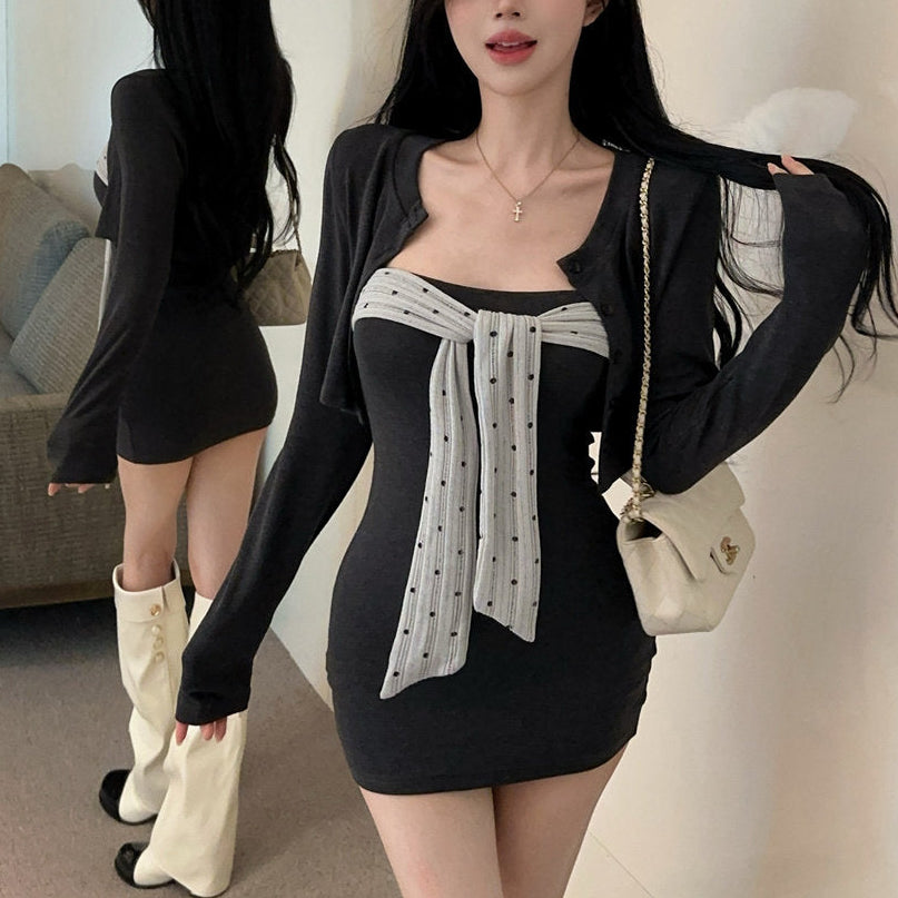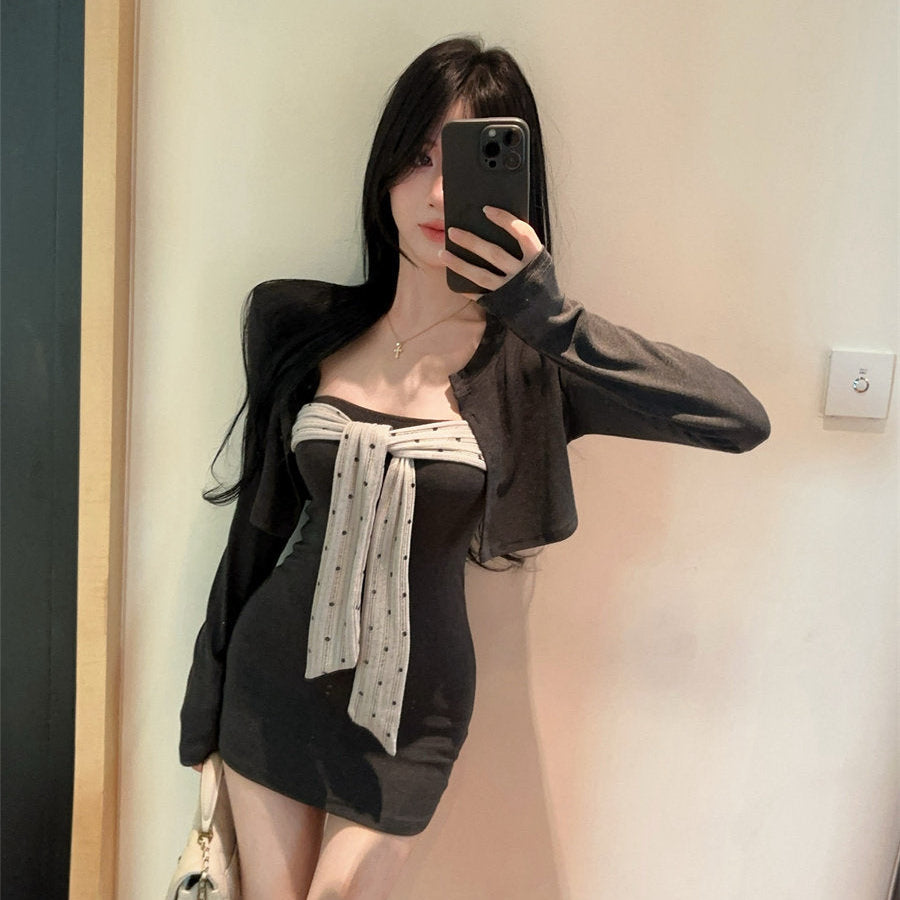 ・チューブトップワンピとショートカーディガンのSETアイテム。